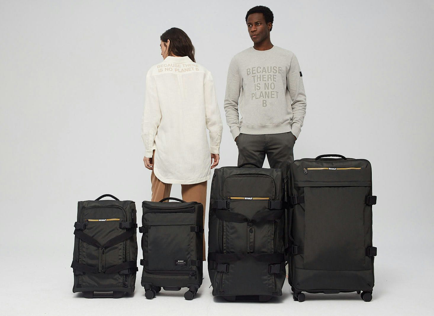 Das spanische Label, dass es sich zur Aufgabe gemacht hat, mit viel Stil die Ozeane von Plastikmüll zu befreien, hat nämlich seine erste Travel Collection herausgebracht. Zwei Rollkoffer und zwei Reisetaschen aus 100 Prozent recyceltem Polyester warten auf eure Abenteuer – und schonen dank der eingebauten Rollen und Teleskopstangen euren Rücken.