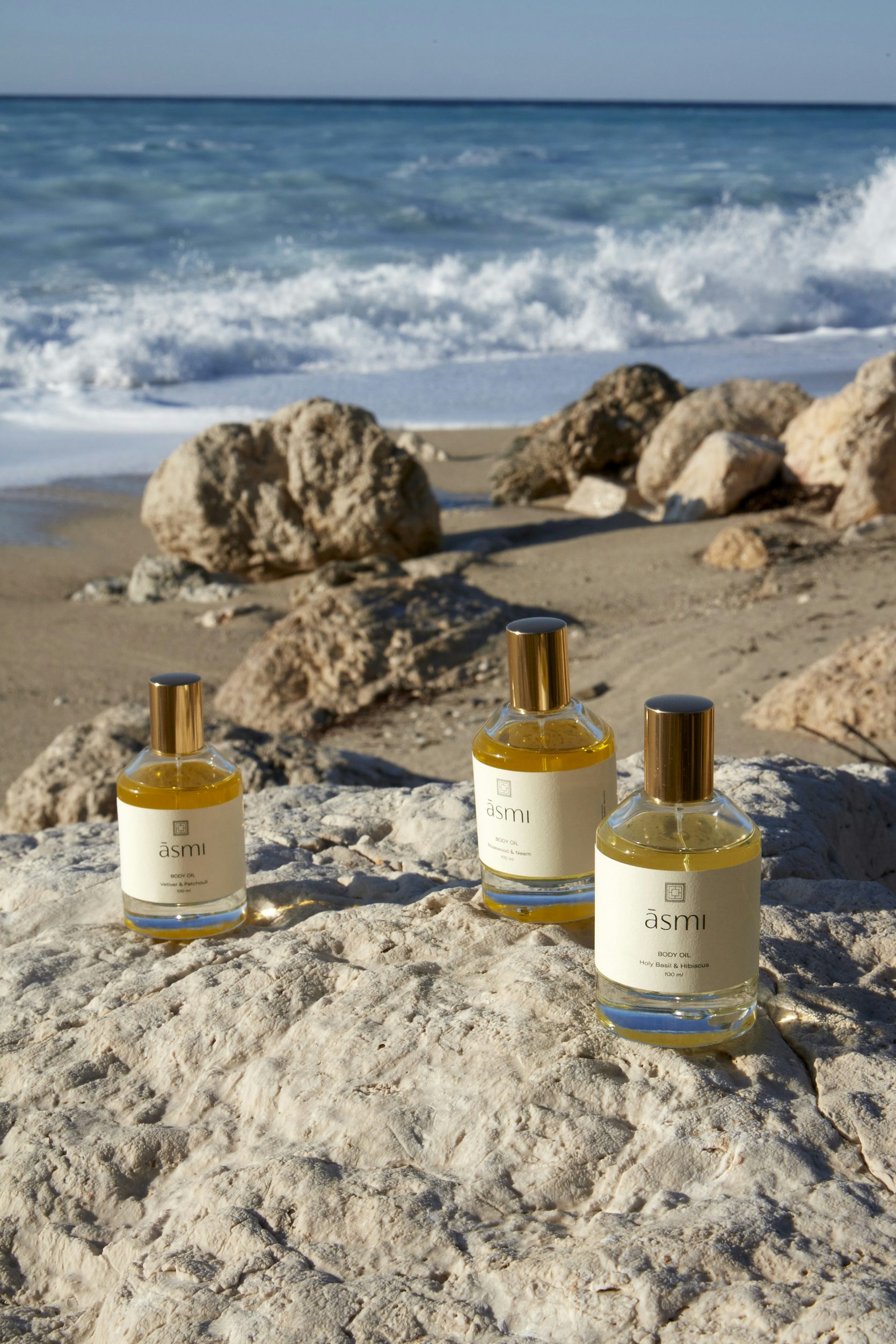 Als Interpretation dieses Rituals sind die Parfüm-Öle entstanden. Auf Basis von Sesam- bzw. Mandelöl und Düften, die zu den jeweiligen Elementen passen, sollen unsere Body-Öle zur Selbstmassage anregen. Diese wenigen Minuten, die man in den eigenen Körper investiert, geben den Muskeln Entspannung und Entlastung vom anstrengenden Alltag und gleichzeitig schaltet man auch den Kopf ab.