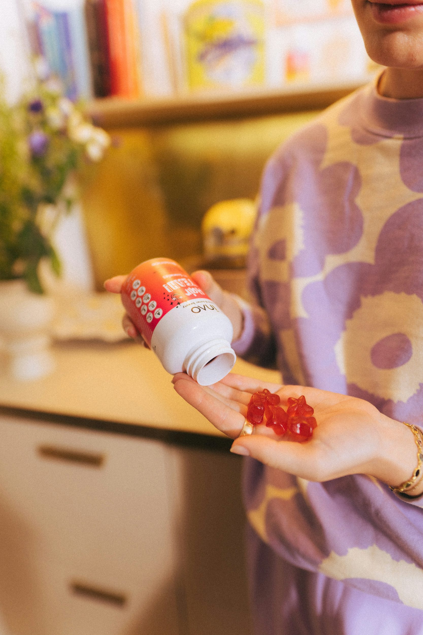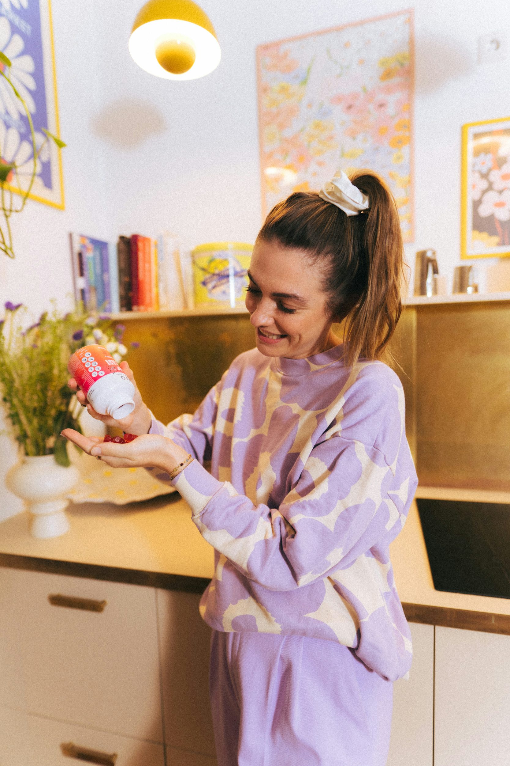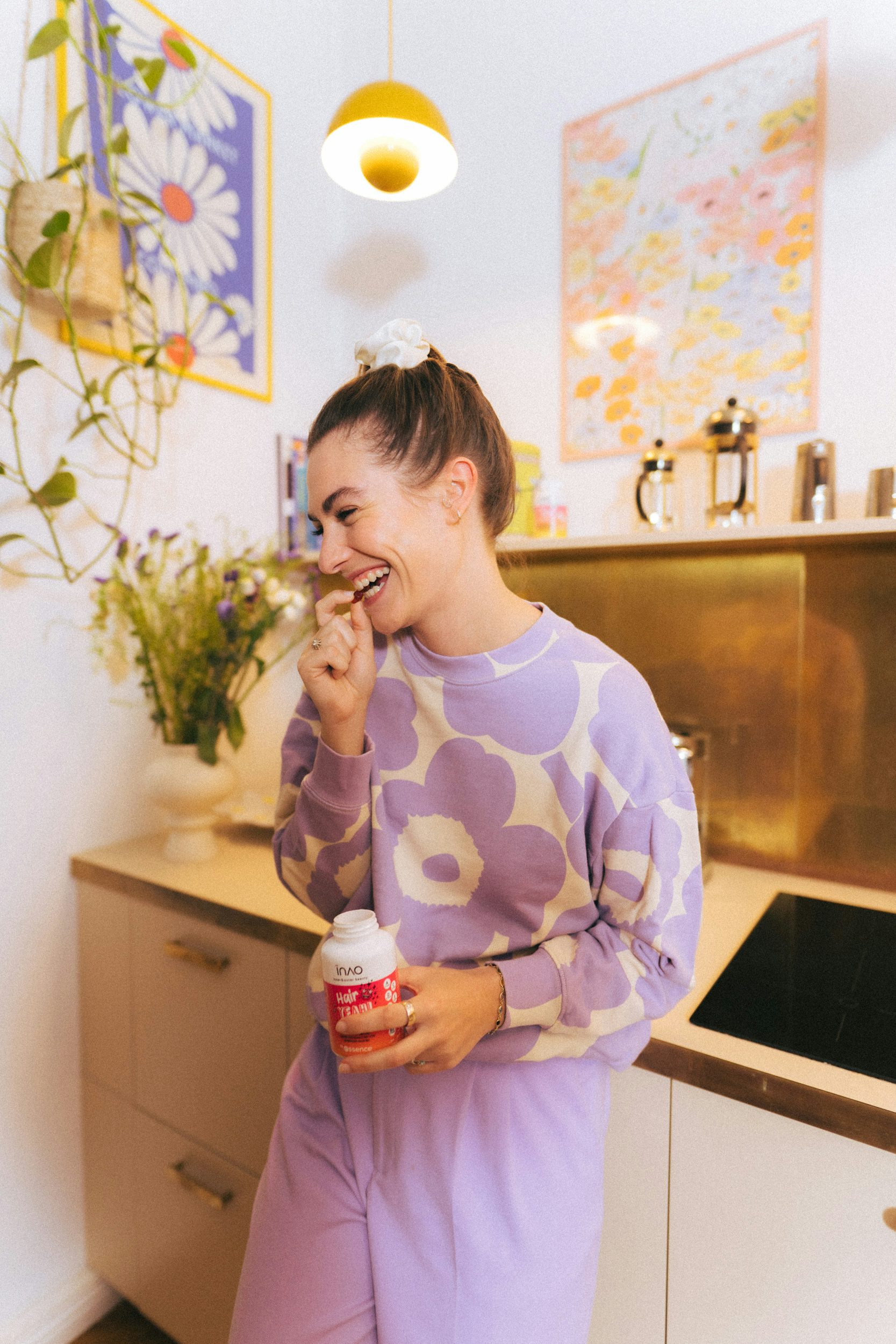 Ich denke, es ist wichtig, dass wir uns auch in stressigen Zeiten immer wieder Zeit für uns nehmen und uns kleine Moment der Auszeit erlauben – so wie ich mit meiner Skincare-Routine. Außerdem ist es jetzt noch wichtiger als sonst, auf ausreichend Schlaf zu achten und genug Vitamine zu sich zu nehmen. Dabei können unsere INAO inner and outer beauty gummies unterstützen.