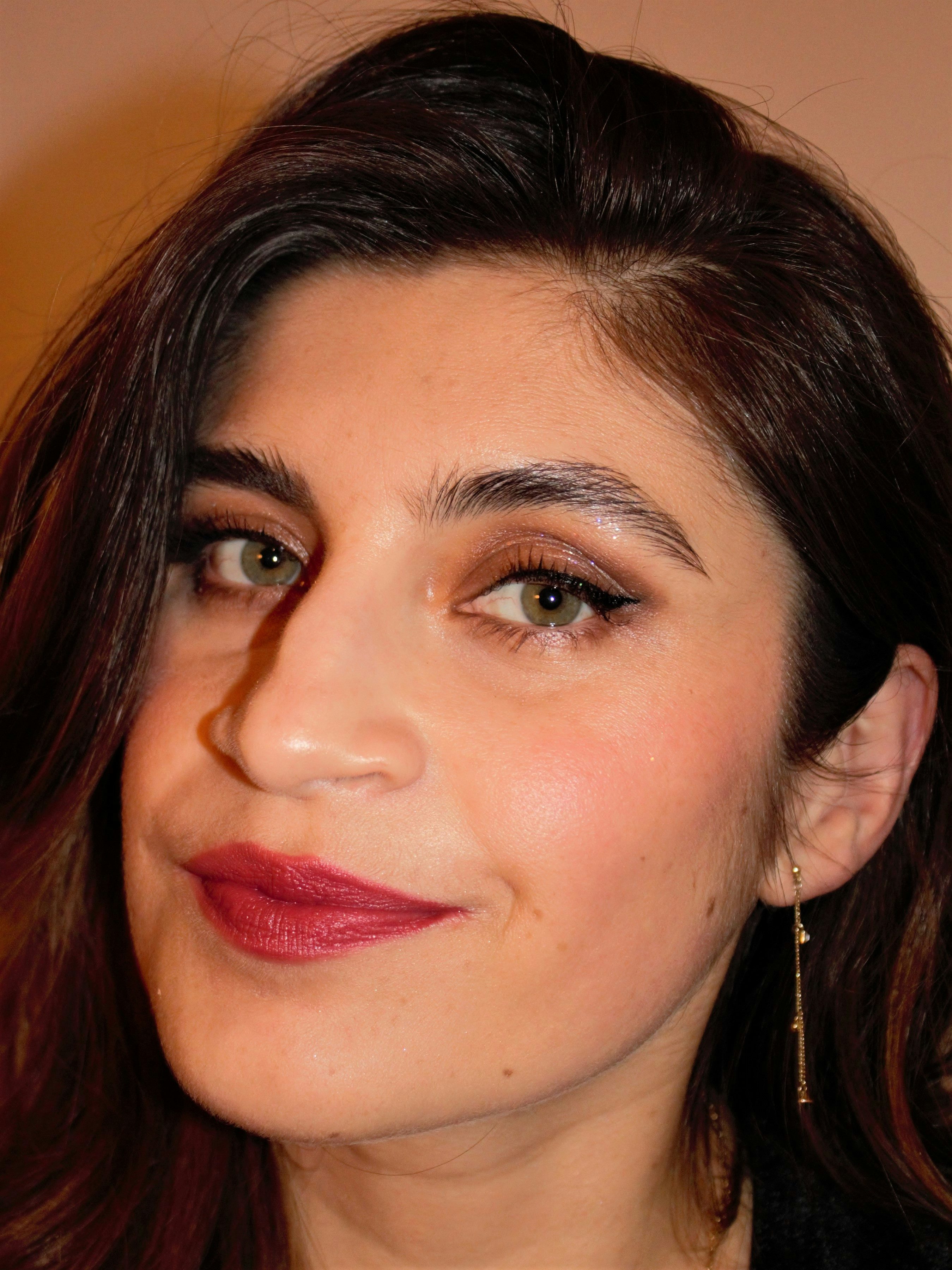 Zum Einstieg erst einmal ein sanfter Look mit einem kleinen Twist. Die Chromium Liquid Eyeshadows von Natasha Denona haben es mir dieses Jahr richtig angetan. Allgemein waren Multichrom-Eyeshadows der Renner in den letzten 365 Tagen. Wenn man diesen Trend nicht auf dem ganzen Lid tragen möchte, ist ein Liner die perfekte Alternative. Ich habe hier eine Form freihändig mit einem hellen Kajal (Lipliner geht auch) vorgezeichnet und dann mit dem Lidschatten und einem feinen Pinsel nachgezogen. Der Bogen ums Auge braucht zwar etwas Geduld, aber das Resultat macht es wieder wett.