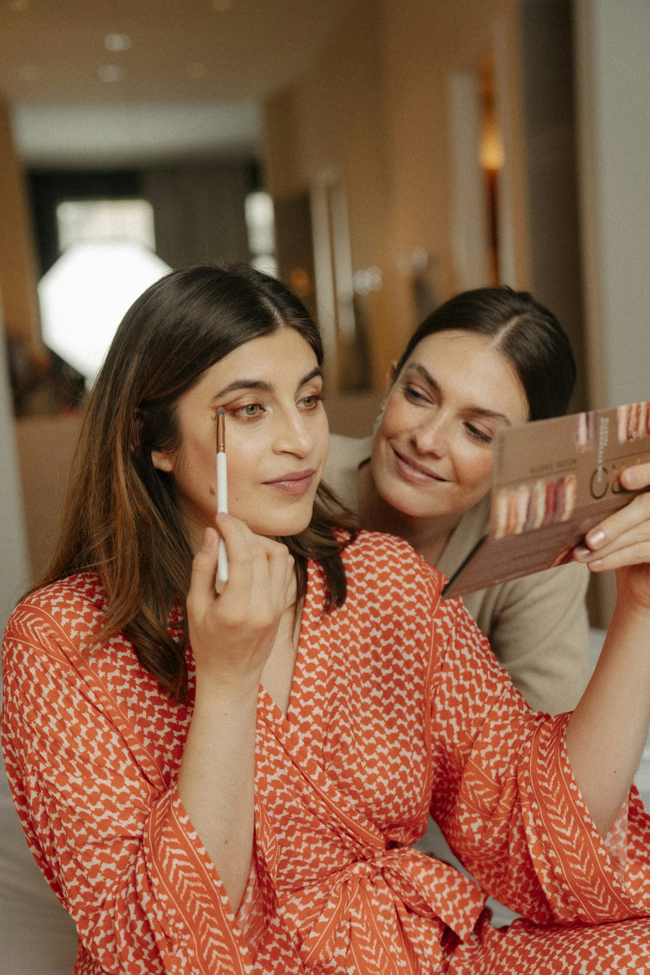 Unser gemeinsamer Glücksmoment? Endlich mal wieder Make-up auflegen, mit Farben und Texturen experimentieren und eine verloren geglaubte Seite (nämlich die glamouröse) an uns wiederentdecken. Und natürlich gemeinsam beim Zurechtmachen jede Menge Spaß haben!