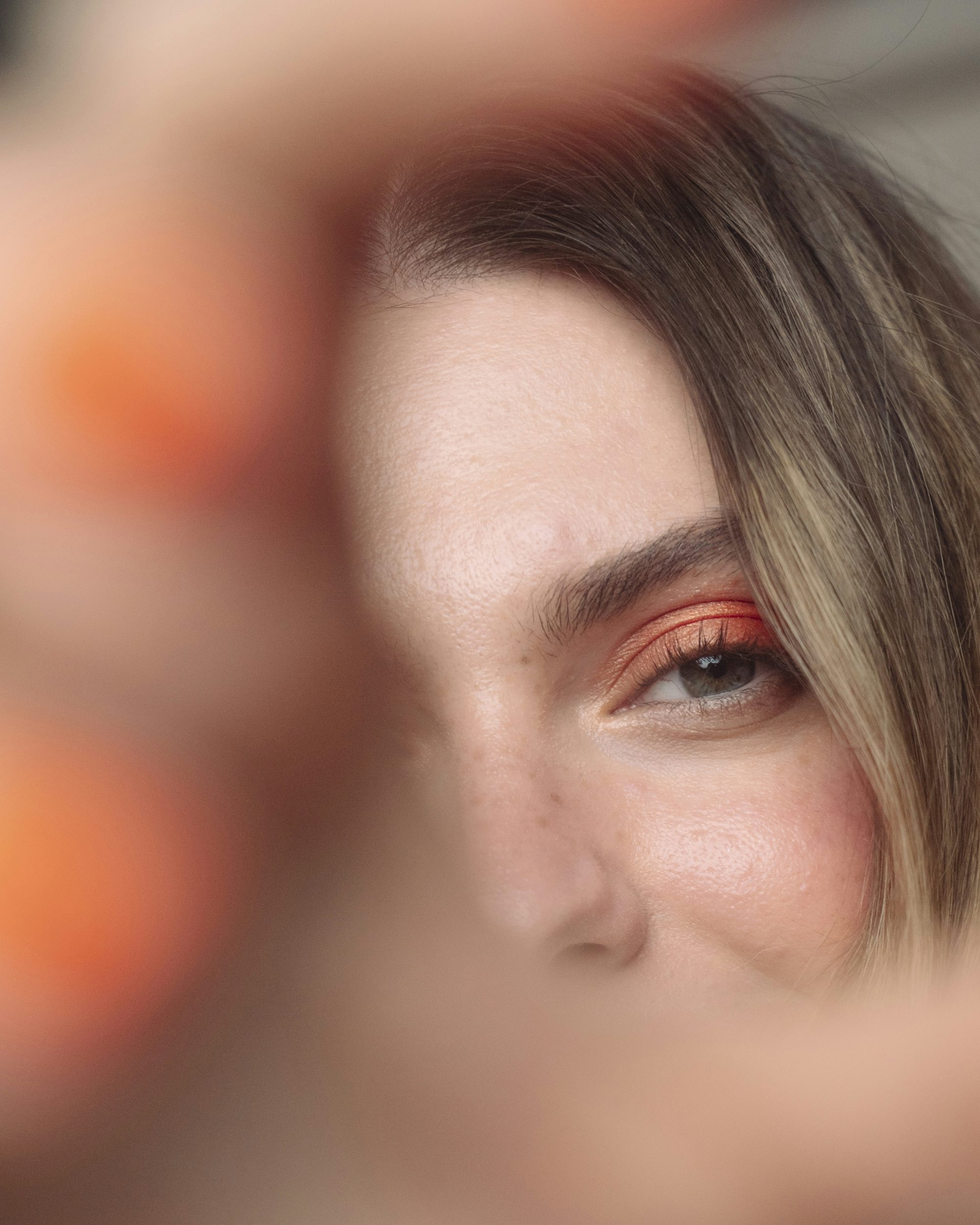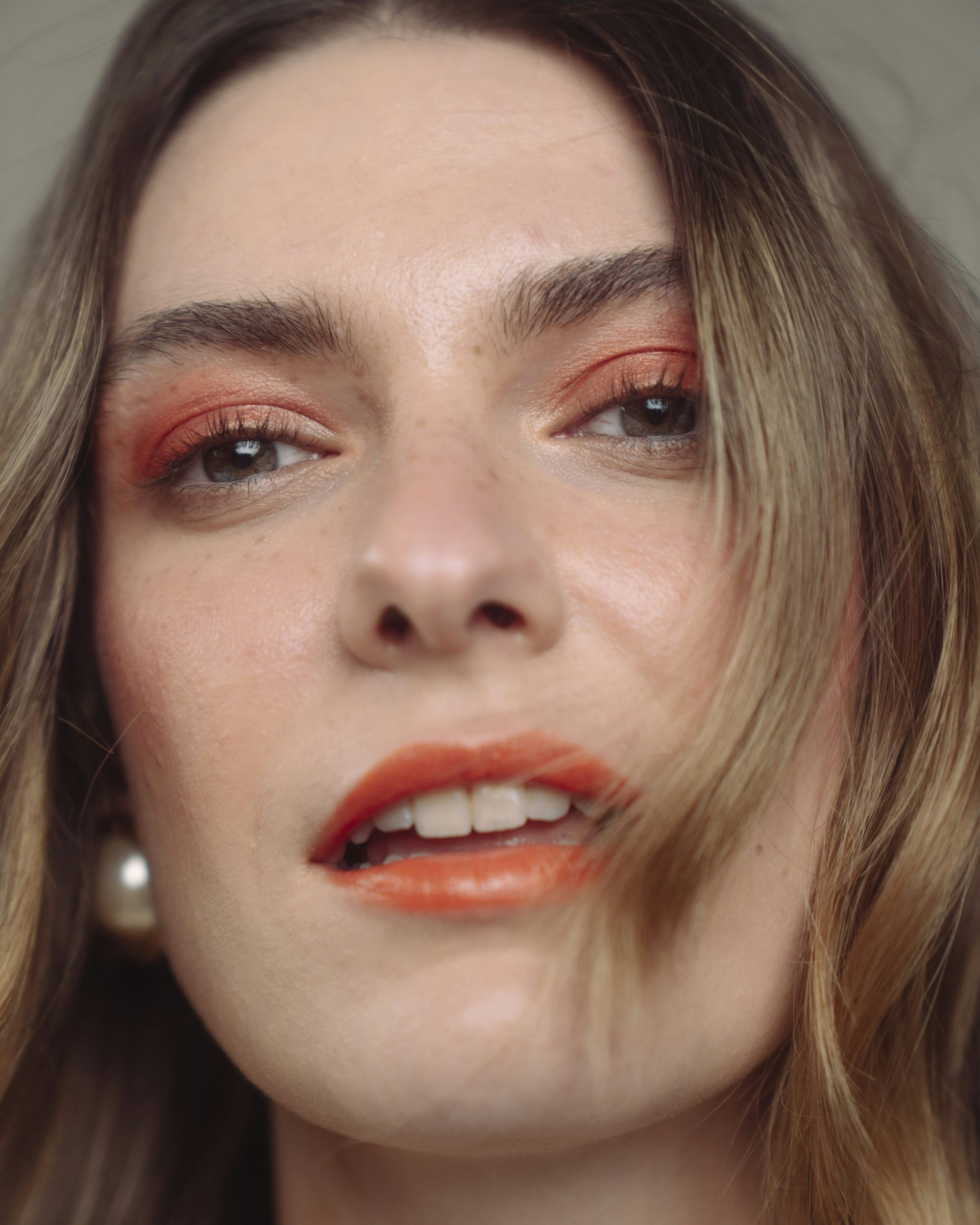 Orange könnte zu meiner Lieblingsfarbe für 2021 avancieren. Denn sie ist moderner als Pink, unerwarteter als Rot und überrascht mit ihren zeitlosen Vibes. Für den dritten Look war das Motto: Ton in Ton. Vom Nagellack, über Lidschatten bis hin zum Lipgloss haben wir alles in ein leuchtendes Orange getaucht.