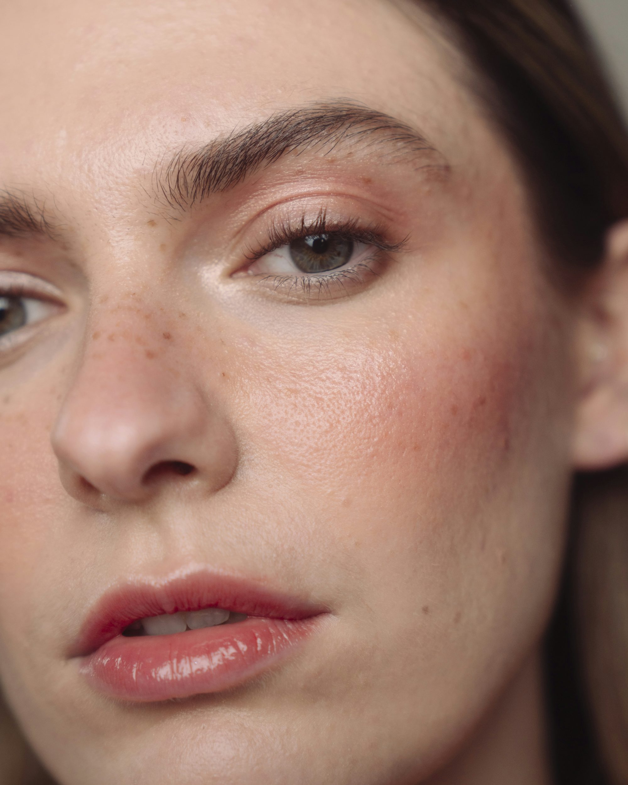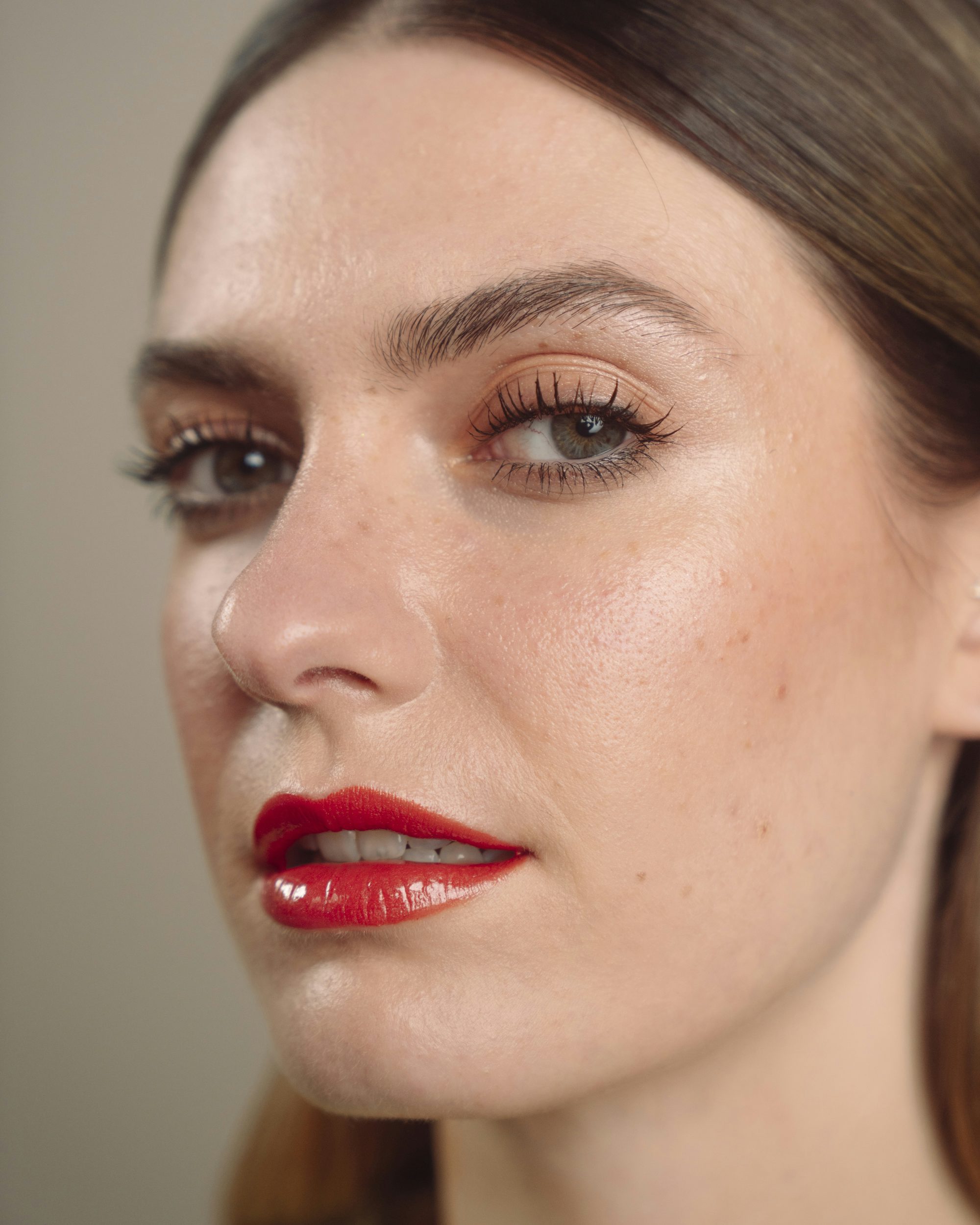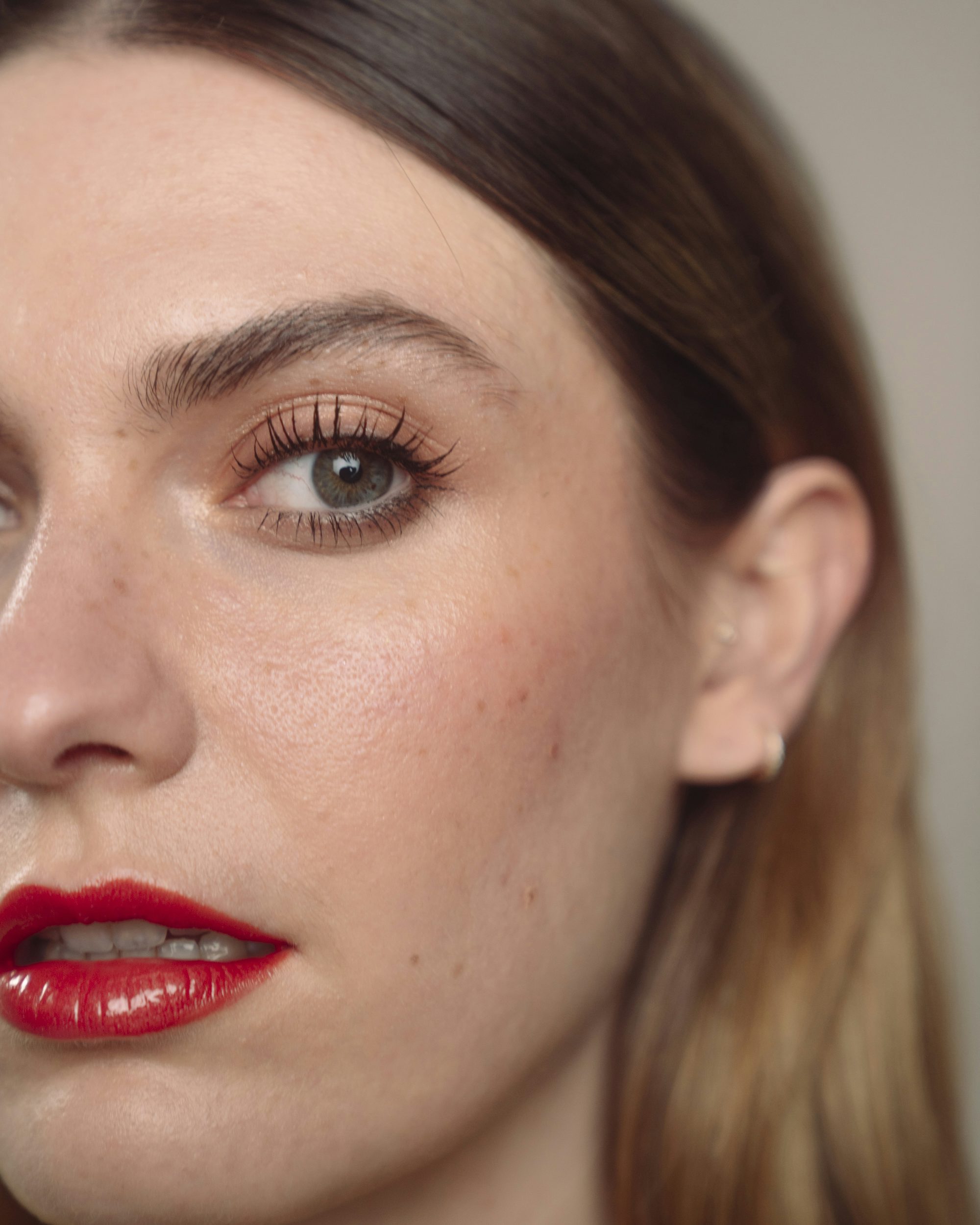 Klar, nicht nur Lipgloss alleine ist ein ausdrucksstarker Look, man kann die glänzende Textur natürlich auch perfekt dazu benutzen, um jeden Lippenstift zu verwandeln. Pluspunkt: Durch den Lippenstift als Primer hält das Lipgloss besonders gut. Da der Fokus bei diesem Look auf den Lippen liegen soll, haben wir auf Blush verzichtet, stattdessen aber die Wimpern getuscht.