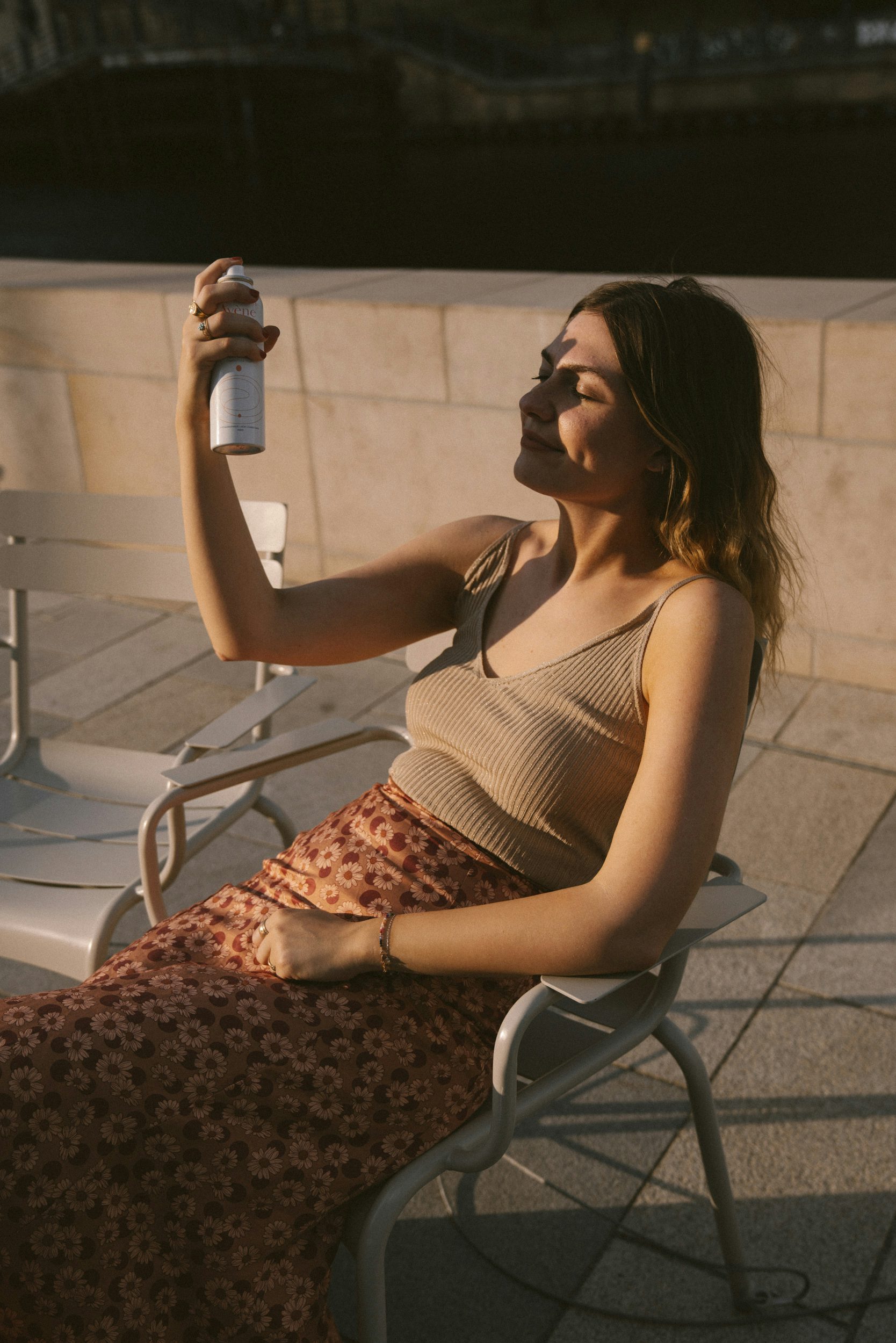Daher sprüht bei uns der Beifahrer, natürlich nicht der Fahrer, das wäre bei der Fahrt viel zu gefährlich, sich ab und zu das Thermalwasser ins Gesicht. Das kühlt ab, verleiht Feuchtigkeit und beruhigt die Haut. Am See ist das Spray auch immer dabei, perfekt, wenn man seine Haut auf die nächste Schicht Sonnencreme vorbereiten will und weit und breit keine Sanitäranlagen. Im Büro lagert ein Spray außerdem immer im Kühlschrank, falls ich im Sommer schwere Beine bekomme! Einfach ein echtes Allround-Talent!