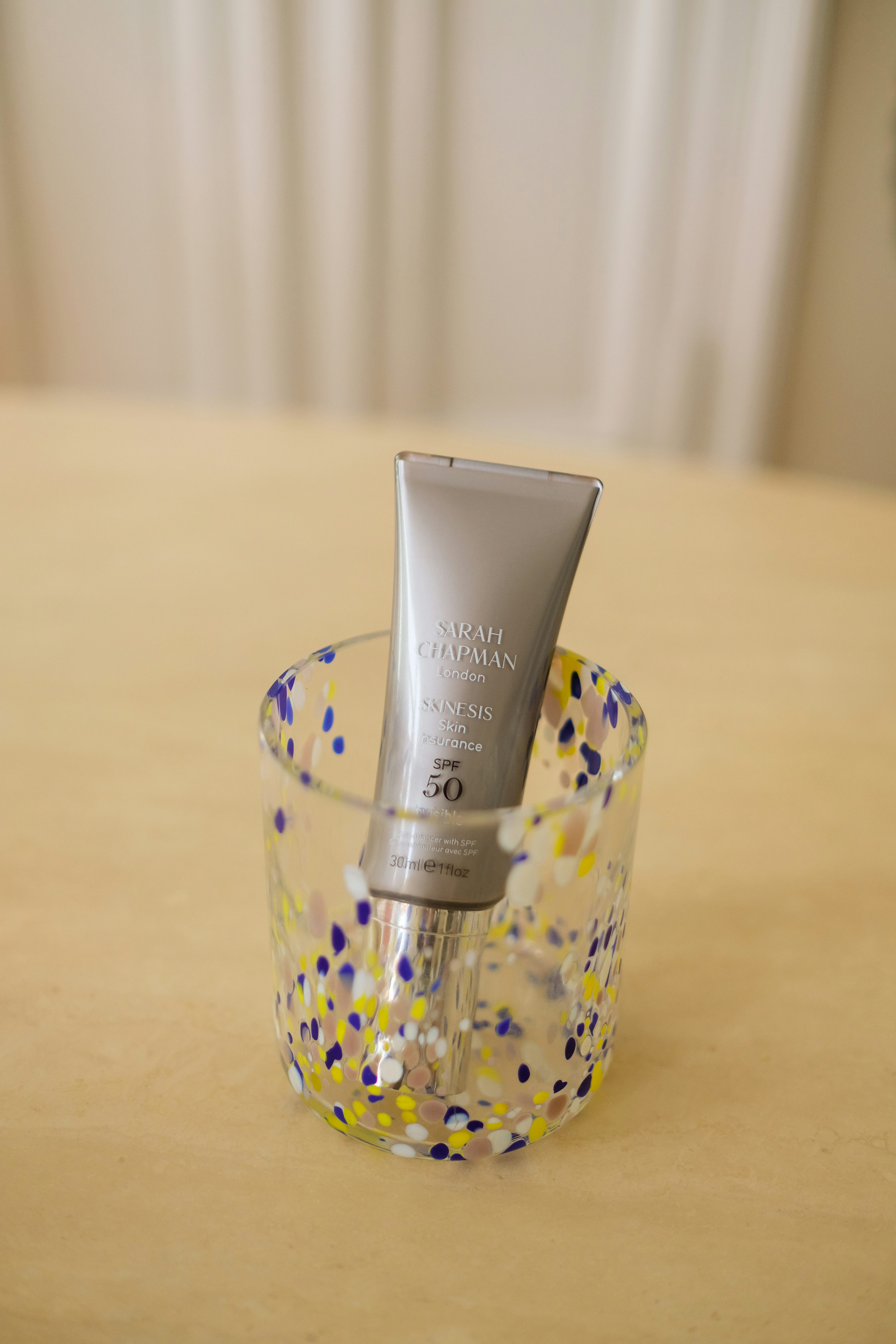 Wer BEIGE aufmerksam liest und in Sachen Beauty ein großer Fan von unserer Beauty-Redakteurin Sarah ist, der kennt die Skin Insurance SPF50 Cream von Sarah Chapman schon. Auch bei mir ist sie im Bad eingezogen und ich muss sagen, sie ist ein zu einem meiner absoluten Sonnenschutz-Favoriten geworden. Sie ist geruchslos, hat eine dünne Konsistenz und lässt sich auch in der ausreichenden Menge fürs Gesicht, nämlich zwei bis drei Finger lang, einfach und easy verteilen. Danach glänzt das Gesicht nicht, noch weißelt die Creme.