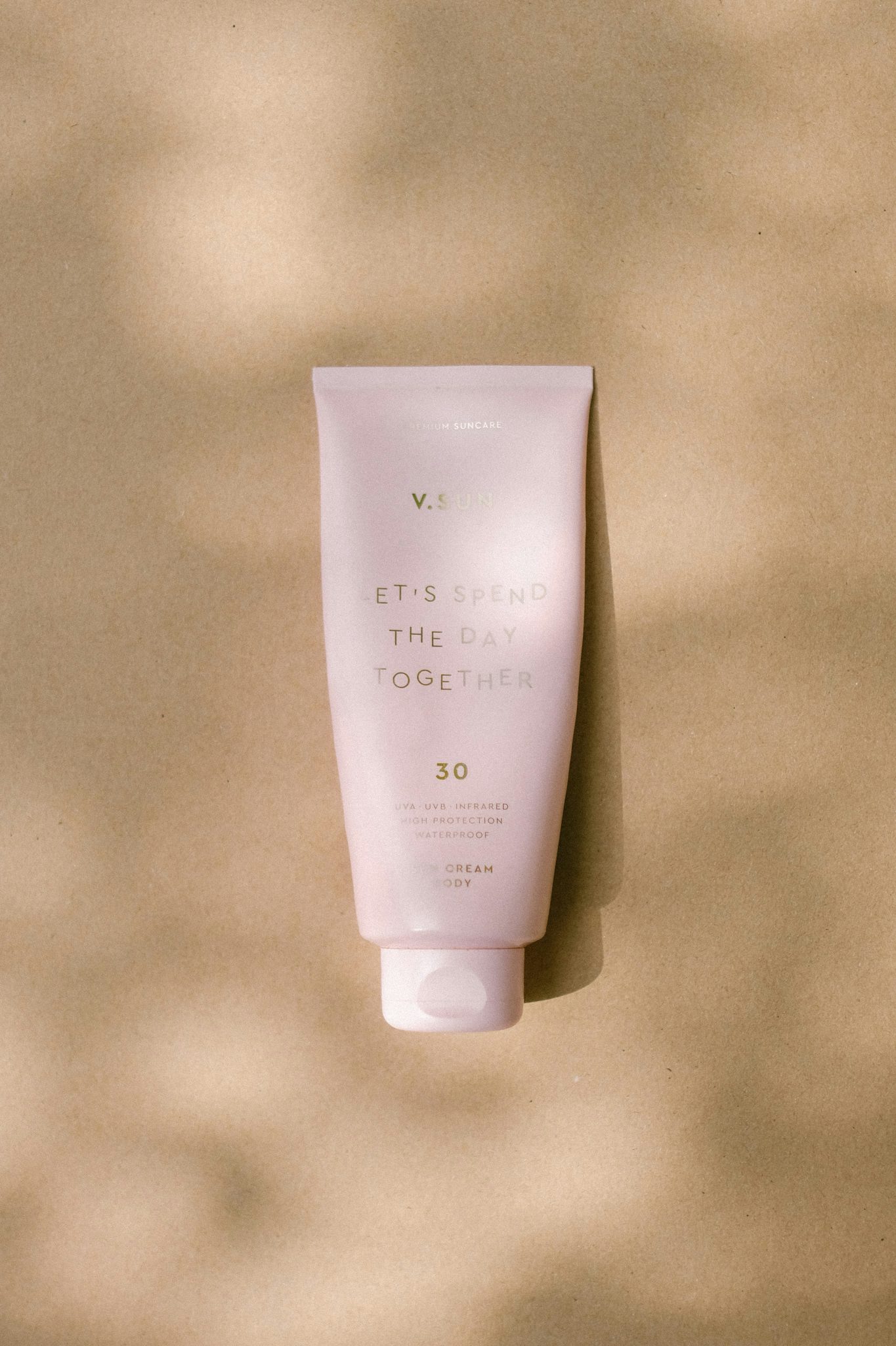Ein richtig guter Sonnenschutz ist der von V.Sun, den es bei Müller oder DM gibt. Er ist nicht zu teuer, er duftet gut (aber nicht zu krass), er lässt sich schnell verteilen und zieht ohne Weißeln ein. Ich hab ihn immer griffbereit – sogar im Schreibtisch hab ich ein Exemplar liegen!