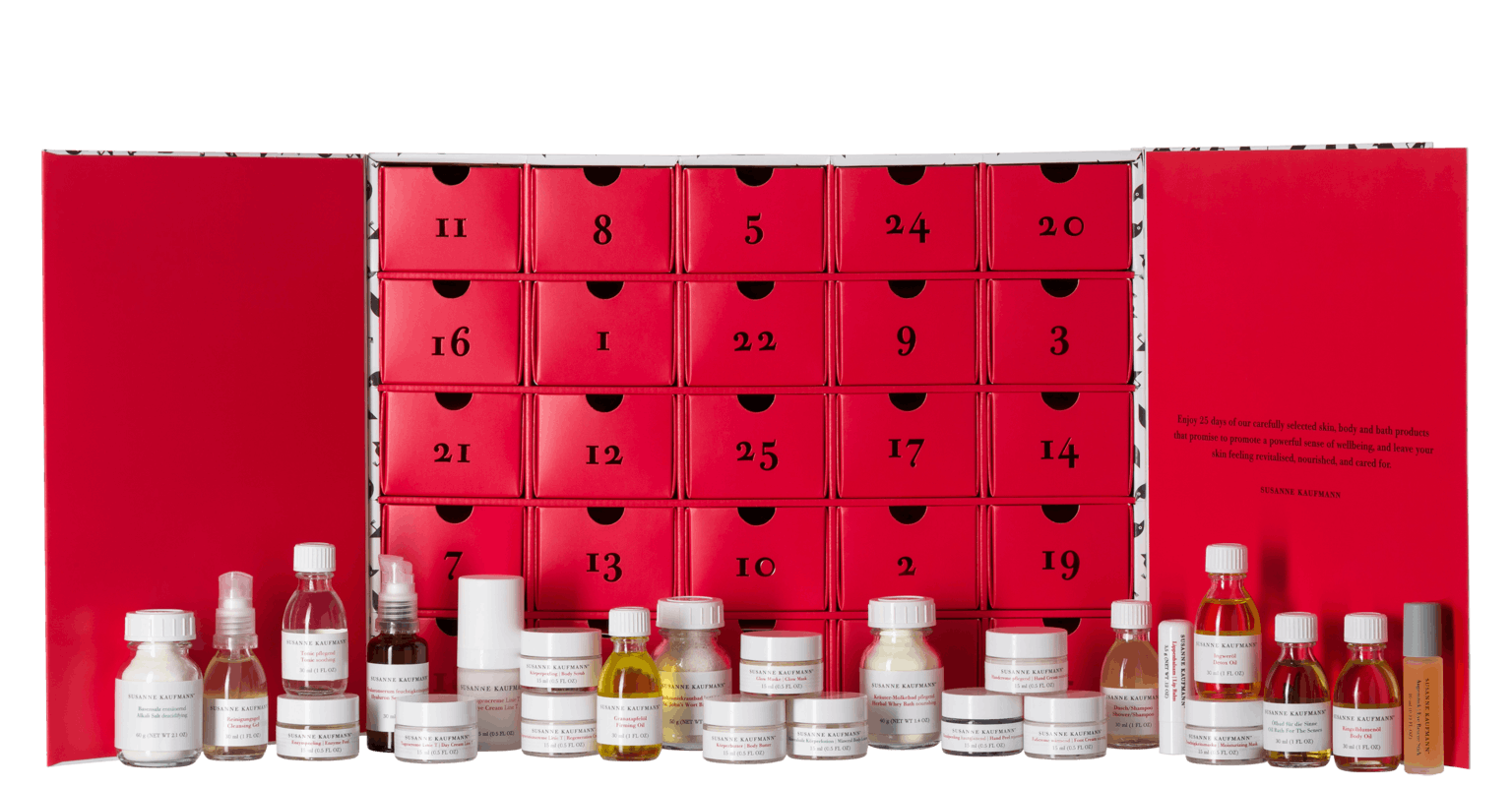 Marie: Der Susanne-Kaufmann-Adventskalender ist ehrlicherweise schon lange ein Traum und steht ganz oben auf meiner Wunschliste – meiner Mama und sicherlich auch meiner Schwiegermama geht es ähnlich. Susanne Kaufmann ist nämlich voll unser Ding, Familienurlaube im Hotel Post Bezau sind mittlerweile schon eine kleine Tradition. Der Adventskalender mit seinen 25 Türchen und seinem Preis ist sicherlich schon ein verfrühtes Weihnachtsgeschenk, aber der Inhalt macht es einem leicht, unter dem Weihnachtsbaum auf das Auspacken zu verzichten.
