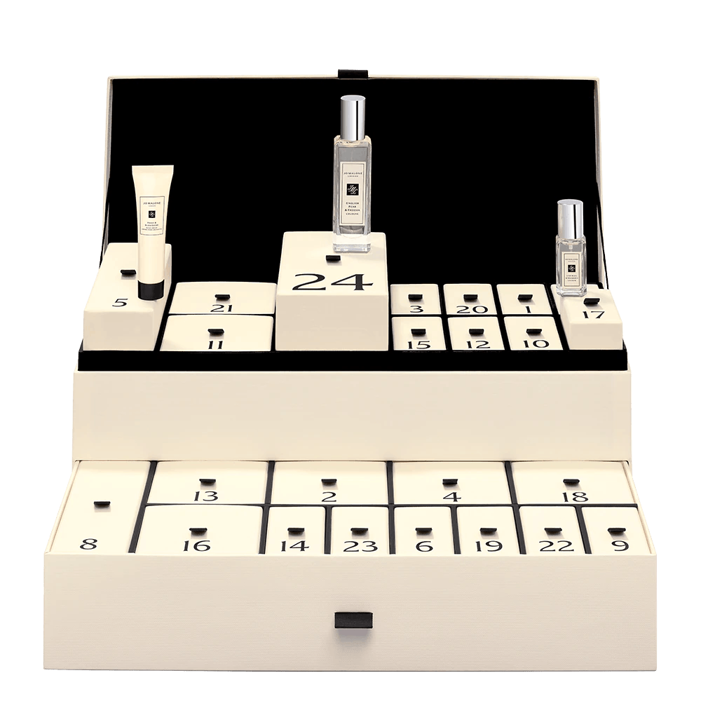 Marie: Ehrlich gesagt ist es etwas gemein, dass wir euch den Adventskalender von Jo Malone vorstellen, denn auf den handelsüblichen Seiten ist er überall ausverkauft. Man muss ihn wirklich suchen wie ein Trüffelschwein, aber bei viele Einzelhändlern vor Ort hat man manchmal noch Glück. Neben Diptyque und Byredo ist Jo Malone einer meiner absoluten Favoriten, was Düfte angeht und ich bin zu meinem eigenen Bedauern noch lange nicht da, wo ich hin möchte, was das Produkttesten angeht.