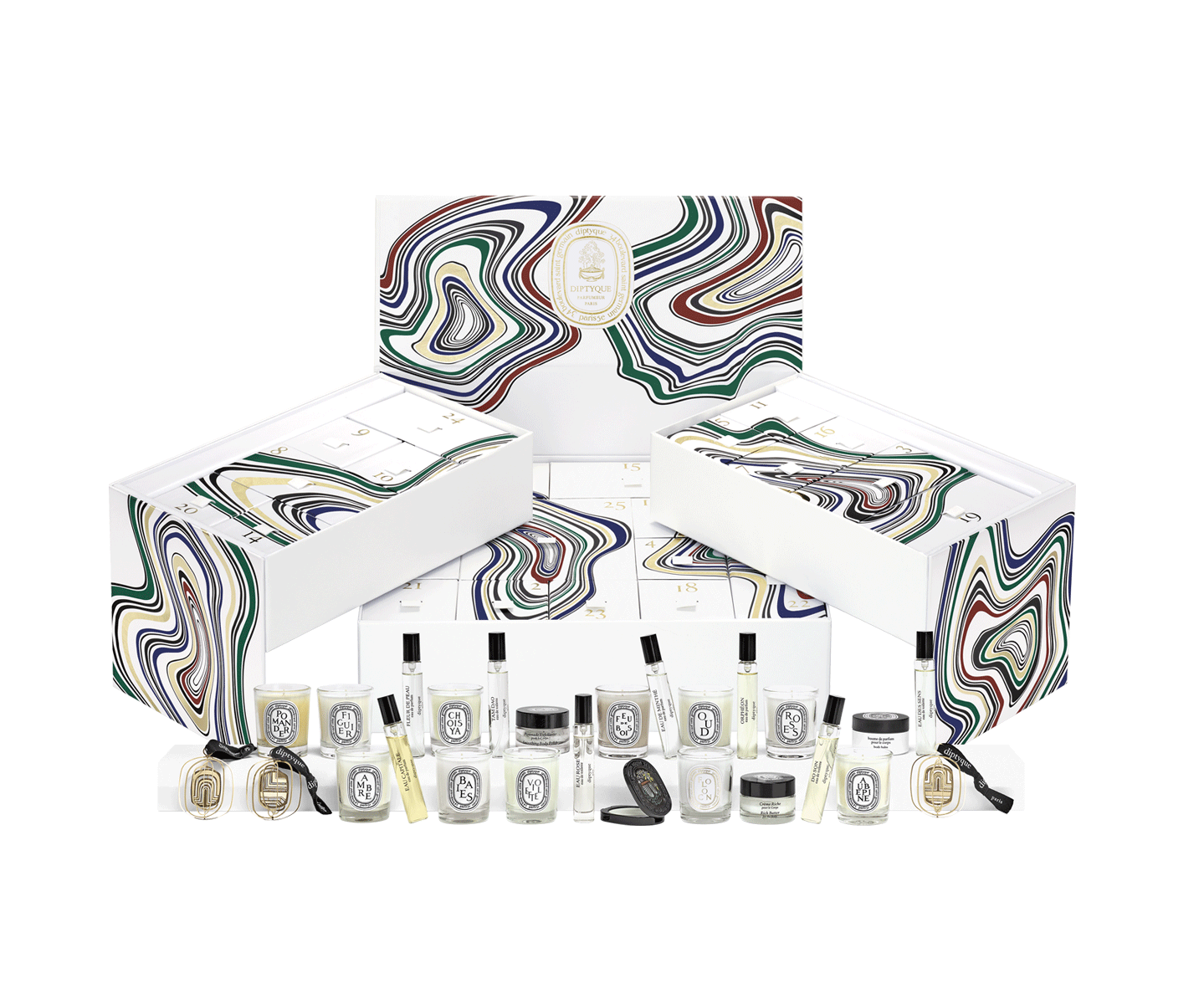 Hannah: Ach ja, Weihnachten ist die Zeit der festlichen Klänge und warmen Düfte. Und auch wenn ich dem Geruch von gebrannten Mandeln und heißem Glühwein nicht widerstehen kann, halte ich Abstand von künstlich-süßen Düften, die von Gebäck inspiriert sind. Lieber sind mir da Düfte, die sich etwas dezenter im Raum verteilen und sich auch das ganze Jahr verwenden lassen. Der Diptyque-Adventskalender bietet 25 solcher Düfte, nicht nur in Form von Duftkerzen, sondern auch als Eau de Toilettes, Eau de Parfum und als Cremes daherkommen. Nicht nur der Kalender selbst verschönert optisch die eigene Wohnung, auch die Kerzen sind wie immer echte Hingucker und lassen sich im Schlaf-, Bade- oder Wohnzimmer in Szene setzen.