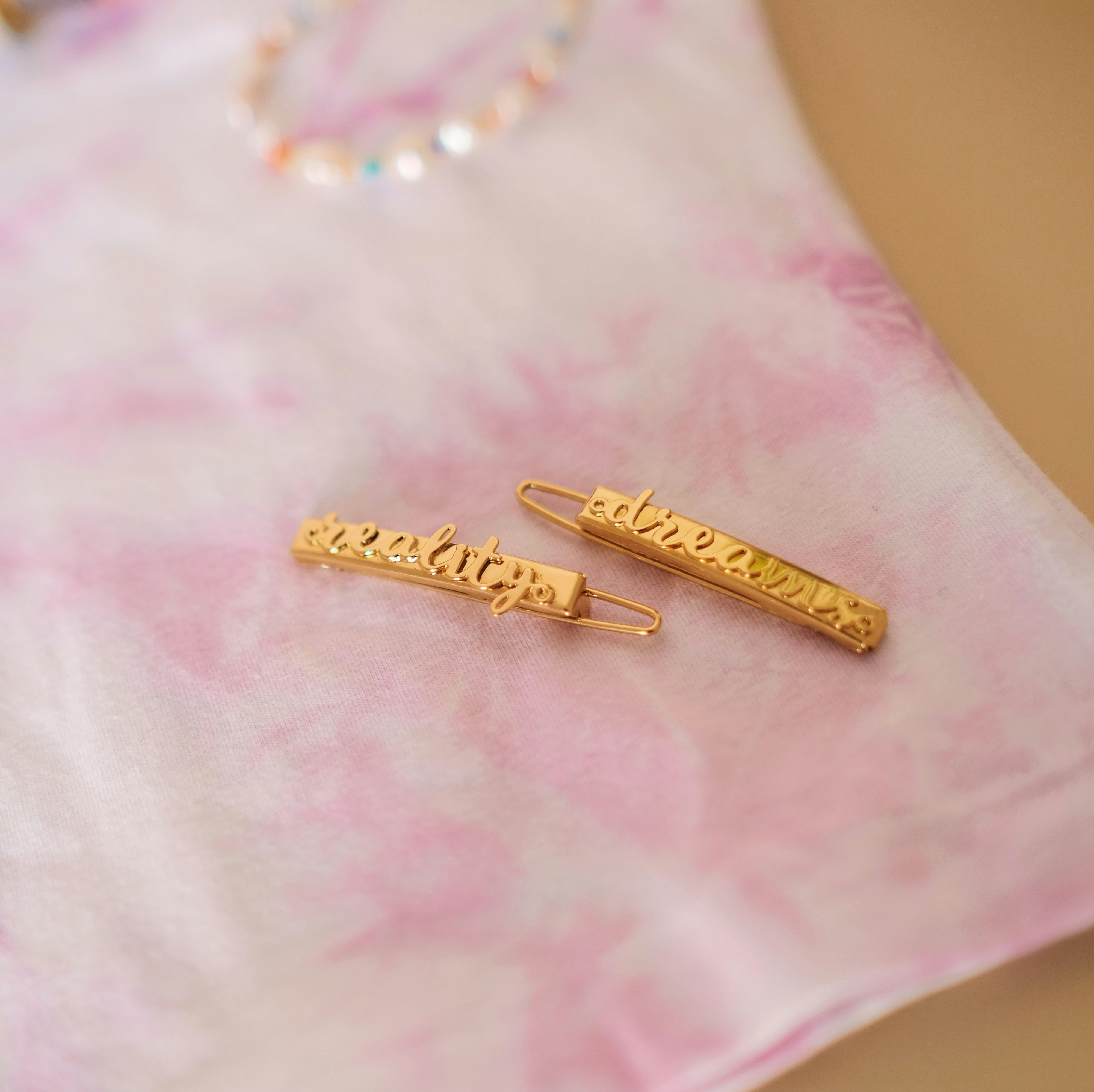 Auch im Urlaub heiß geliebt: Haarspangen. Ob am Pool, im Meer oder bei Wind an Land, nichts hält die Haare besser aus dem Weg und sieht dabei noch so gut aus. Danke, liebe Malaika, für die schönen goldenen Exemplare, ich liebe sie jetzt schon sehr. Eine rechts, eine links und der Tag kann nur gut werden.