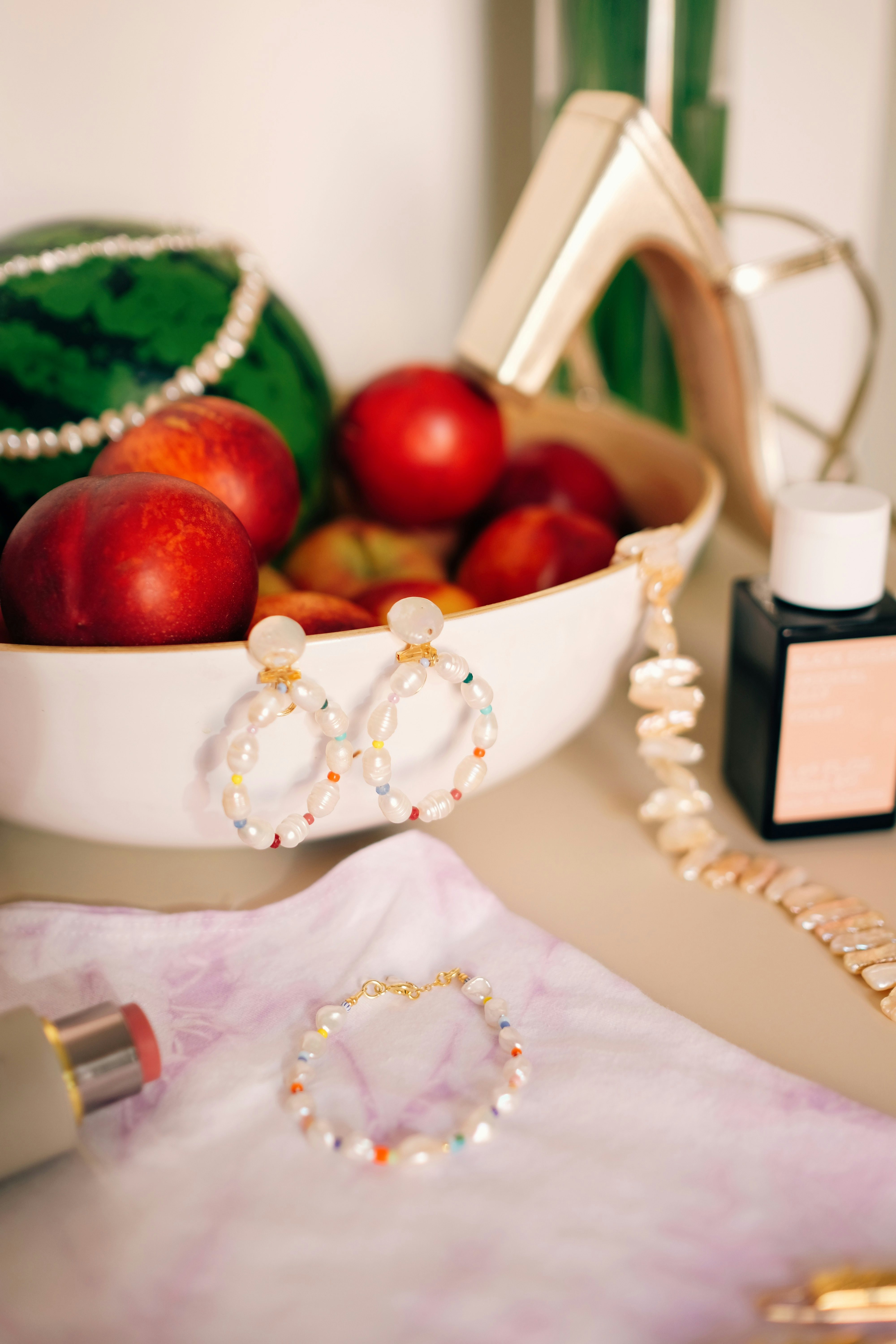 Perlenketten: Erbstücke, Ohrringe: Mitbringsel aus Amsterdam, Armband: Telawave, Fußkettchen: Ciao Amore