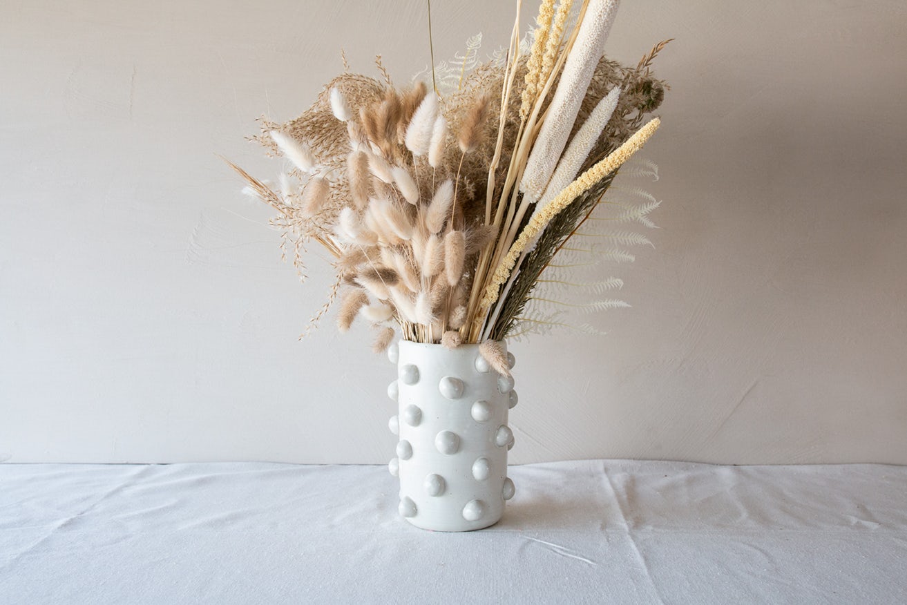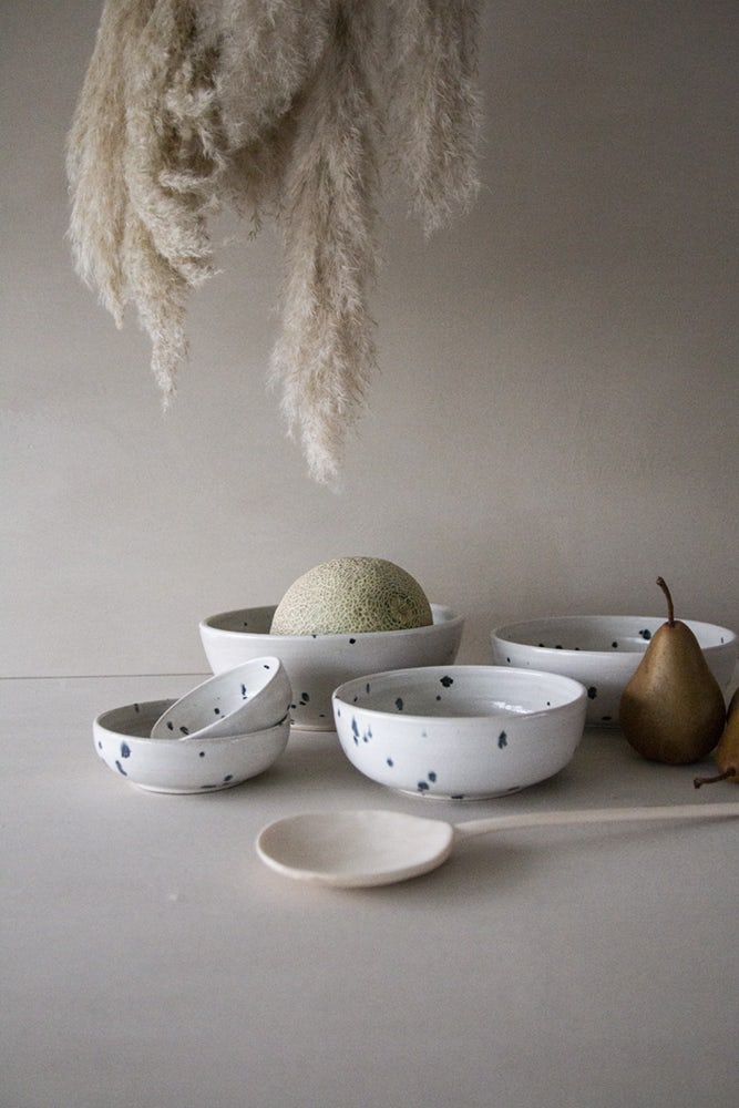 Zum Glück haben wir dank unseres zweijährigen Sohns von ganz alleine sehr viel Routine innerhalb einer so unsicheren neuen Situation. Das hilft im Alltag tatsächlich sehr. Thorben fährt jeden Morgen in die Tischlerei, arbeitet mit einem kleinen Team weiter und entwickelt neue Ideen, baut intern ein paar Räume aus und sortiert sich. Ich kümmere mich weiter um unseren Onlineshop und arbeite an neuen Keramikprojekten – nur eben meistens von zu Hause aus und mit neuem, verlangsamten Tempo. Wann immer nötig, bin ich aber auch noch im Atelier.
