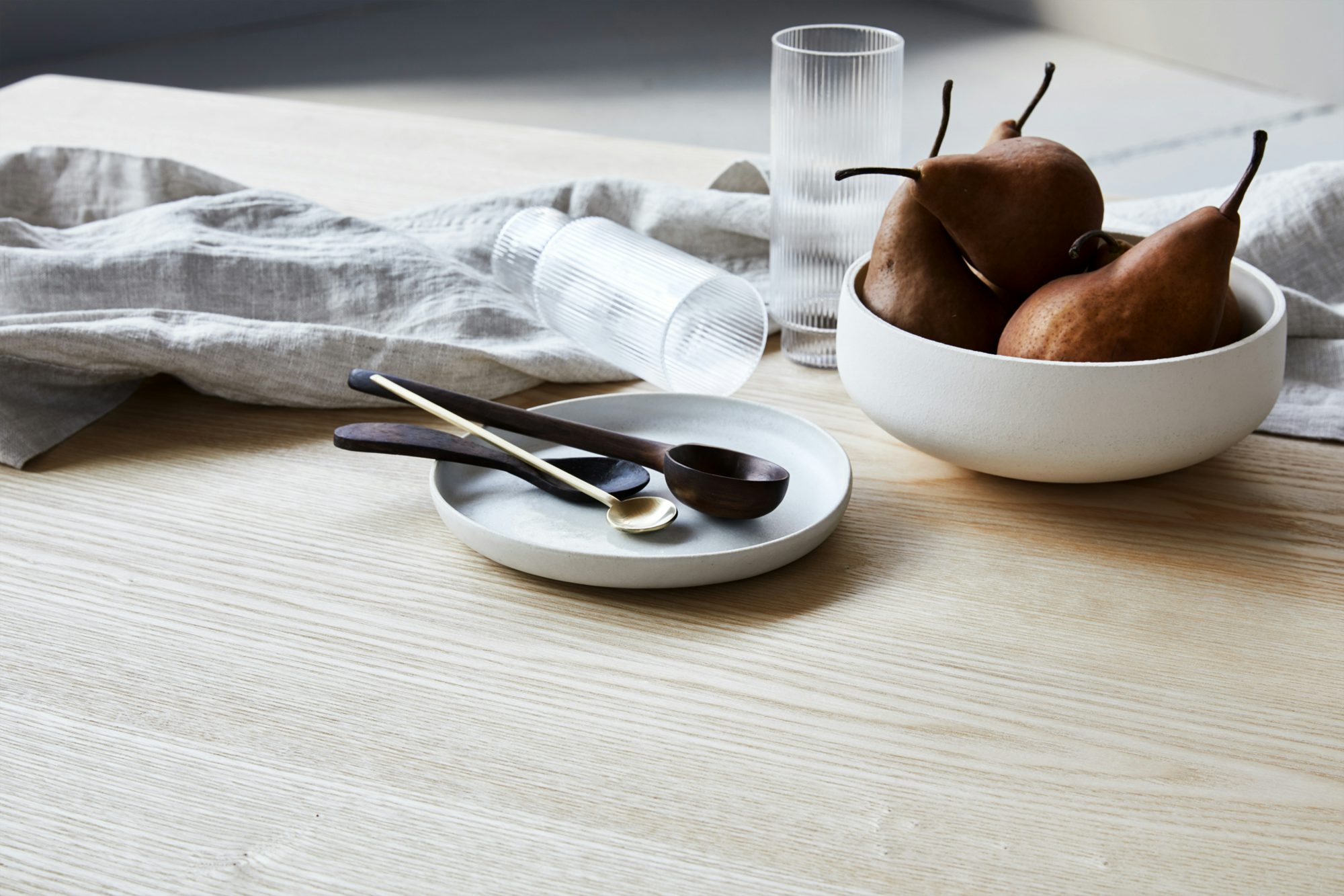 Thorben betreibt seit mittlerweile 16 Jahren seine eigene Tischlerei Møbelwerft; er bringt also ein riesiges Know-how und Erfahrungen mit. Für mich – ich bin ursprünglich Illustratorin – hat sich meine Arbeit seit unserer ersten Begegnung immer mehr in Richtung Interior-Design entwickelt. Zuerst bauten wir gemeinsame Möbel nur für uns und unsere Wohnung – wir haben viel experimentiert und spielerisch nach Ideen gesucht. Parallel fing ich an, mit Keramik zu arbeiten und habe das Drehen an der Scheibe geübt. Meine Keramikstücke und unsere Möbeldesigns passten, ohne dass es geplant gewesen wäre, ziemlich gut zusammen. Beides basiert auf klassischen Handwerkskünsten; natürliche Materialien und eine hohe, handgefertigte Qualität zeichnet sowohl die Keramiken als auch Möbel aus. Die Idee, ein eigenes Label zu gründen, mit dem wir diese Möbel und Keramikstücke auch verkaufen, kam irgendwann ganz natürlich. Seit Anfang 2016 gibt es uns nun.