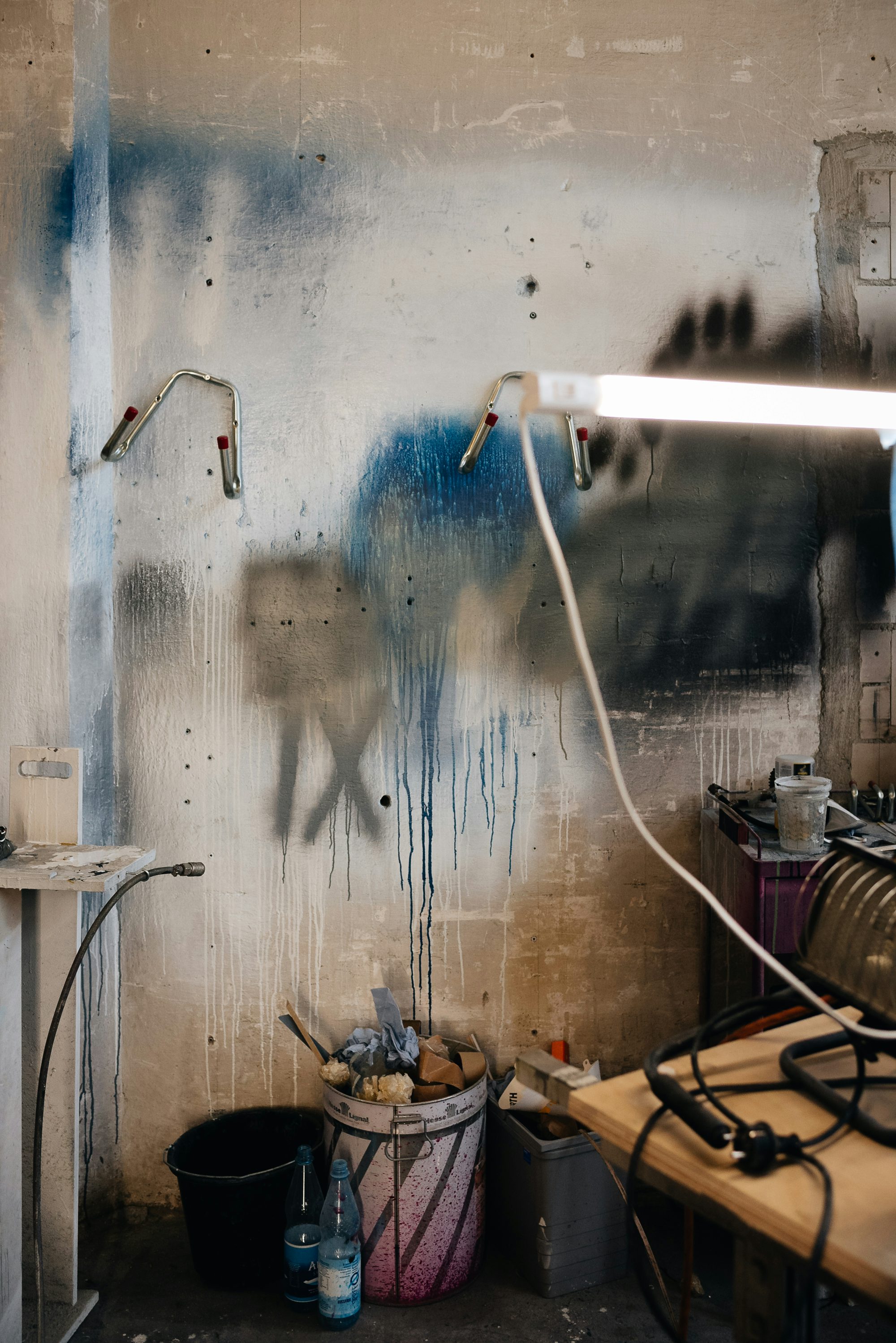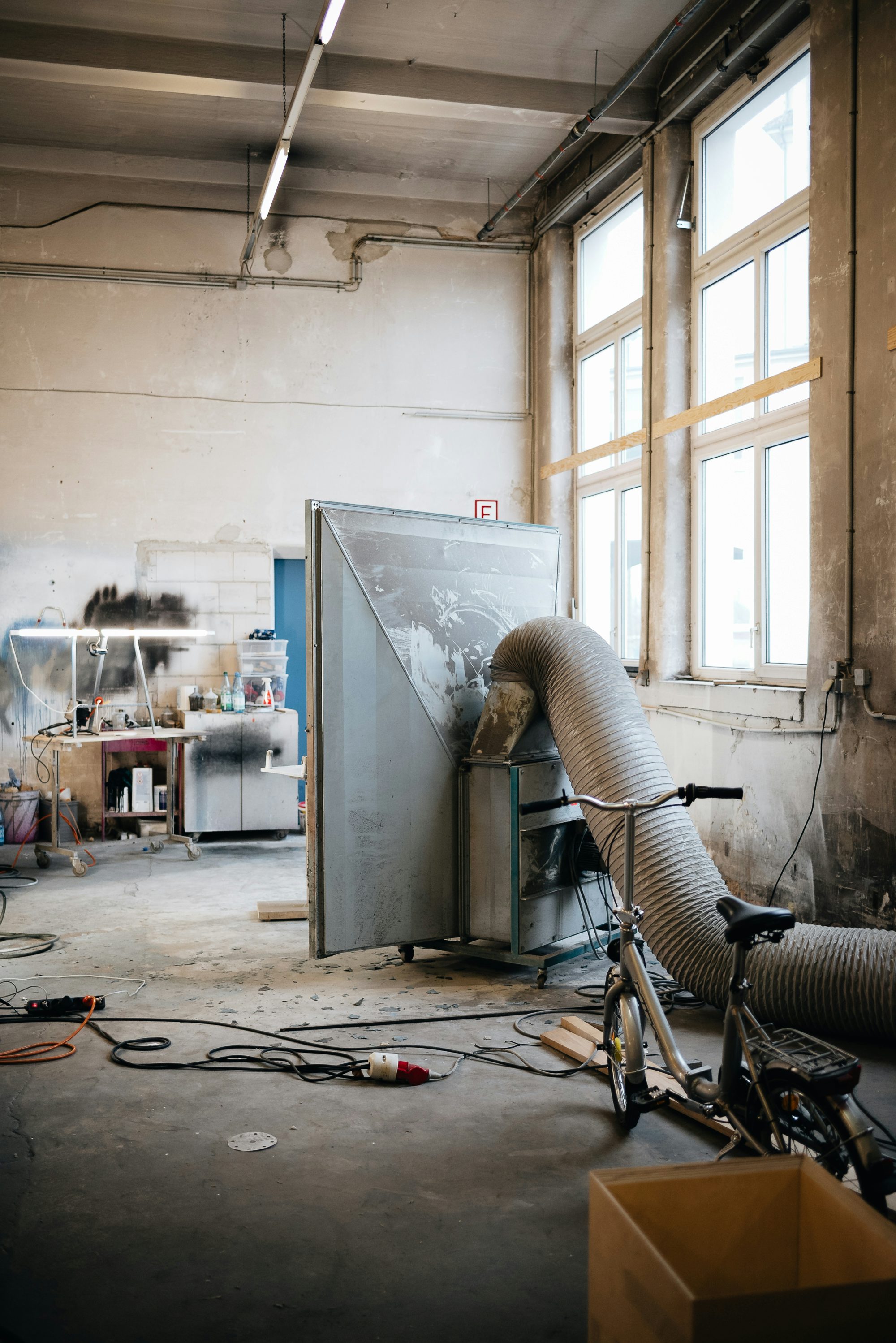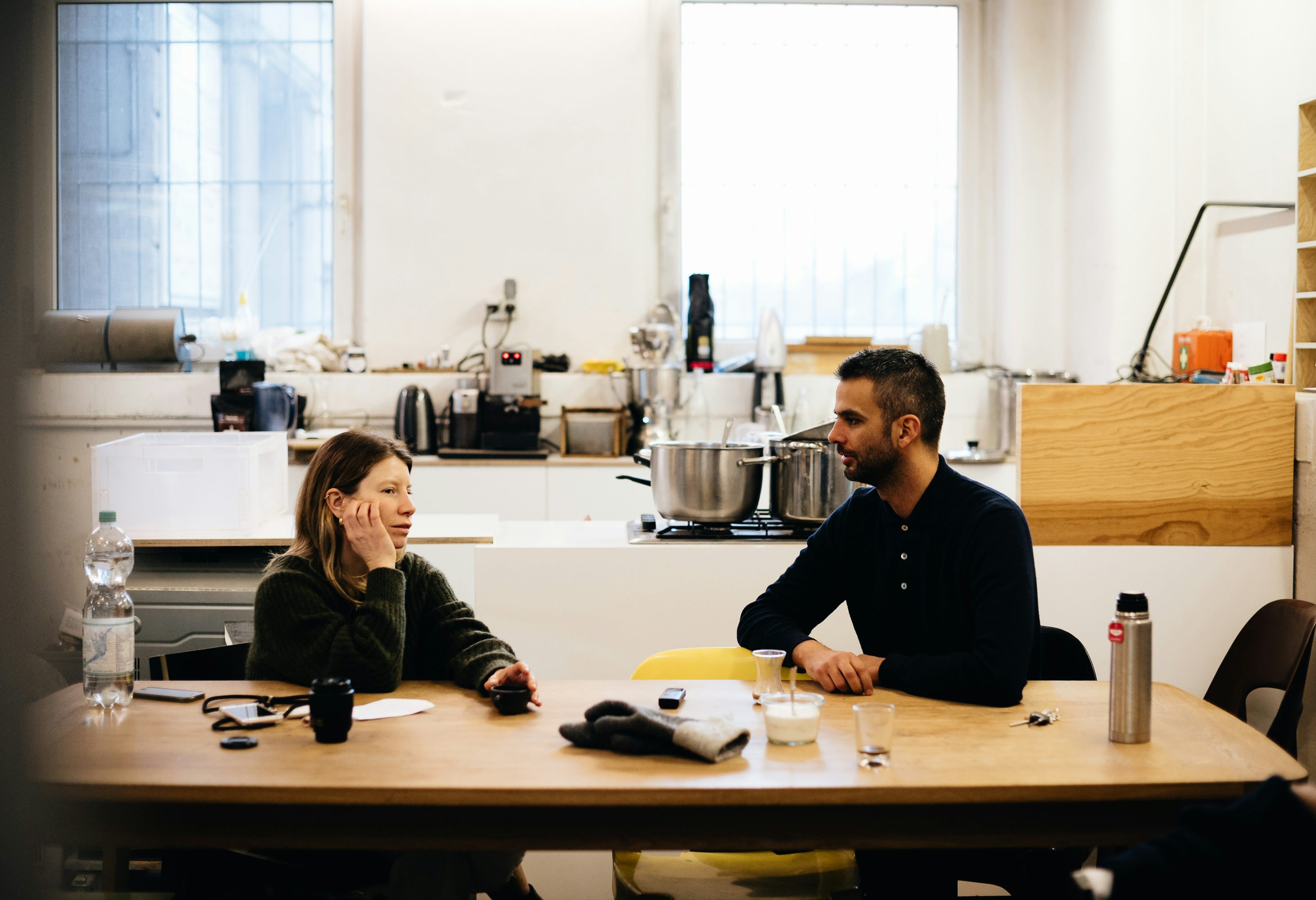 In einer 500 Quadratmeter großen, alten Fabrikhalle haben sich Lasse Schnack, Sebastian Kunath und Robert Zeise ihren Traum einer großzügigen, perfekt ausgestatteten Produktionsstätte samt Büro in der Hauptstadt verwirklicht. „He, habt ihr Hunger? Wir haben gekocht!“ pingt mich Sebastian vor unserem Besuch via iMessage an. Ja, das klingt verlockend! Leider durchkreuzt das Wetter unsere Anreisepläne (Öffis, Spaziergang) mit einer Portion satten Regens. Als wir nach einer mittelschweren Drive-Now-Odyssee endlich mit Sebastian am Tisch sitzen, ist vom Eintopf zwar nichts mehr übrig. Dafür stehen zwei Tassen warmen Kaffees vor uns und wir sind schon viel zu eingenommen von den hohen Hallen und all dem schweren Gerät, um an Essen zu denken.