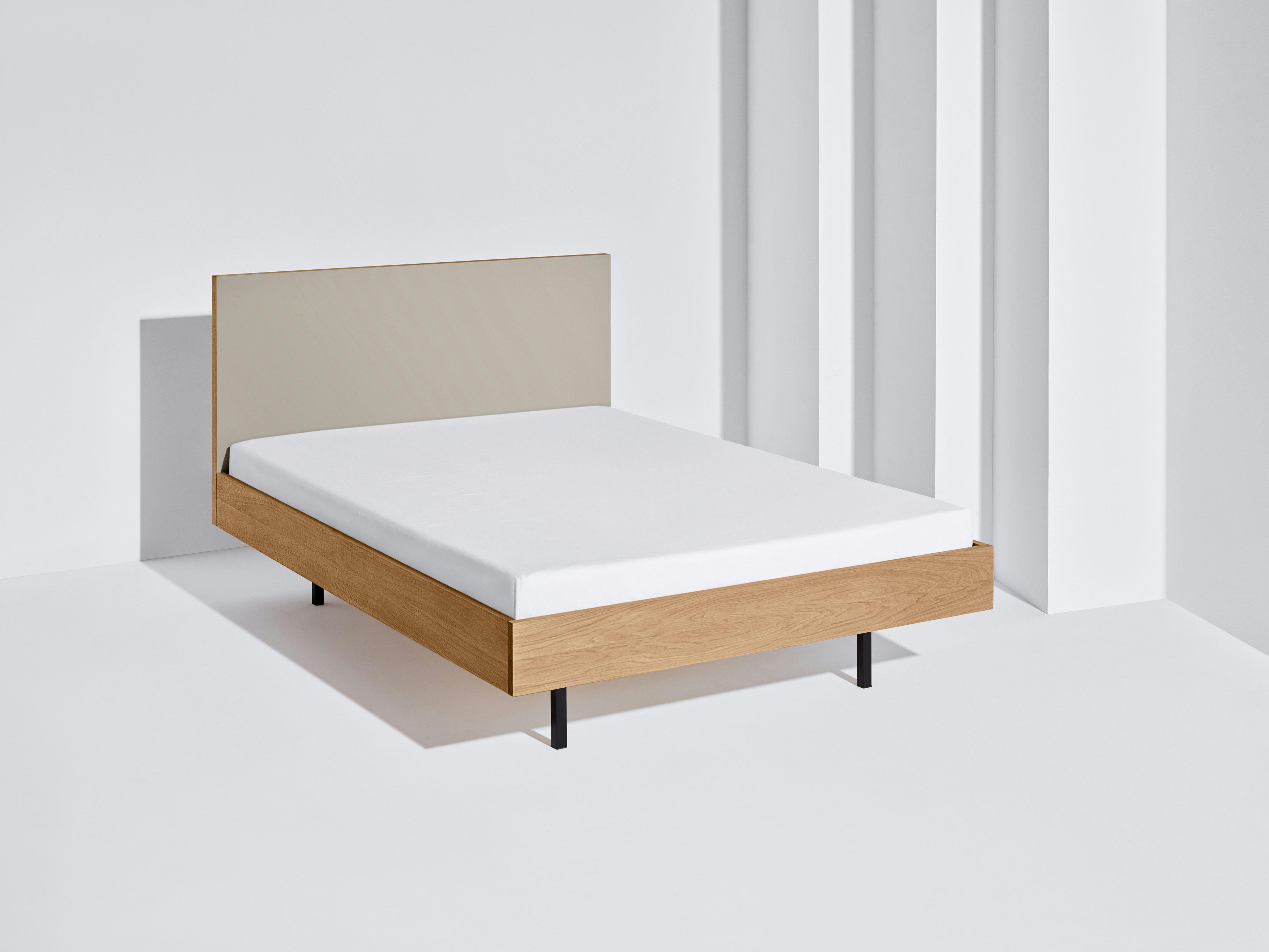 Unser Holzhändler sitzt in Berlin-Tempelhof. Wir arbeiten sehr viel mit Eiche, die aus Bayern und dem Spessart kommt. Unsere Metallteile lassen wir in der Rummelsburg fertigen. Wir arbeiten sehr lokal. Nur unser Linoleum, für zum Beispiel die Kopfteile vom Bett, kommt aus Holland.