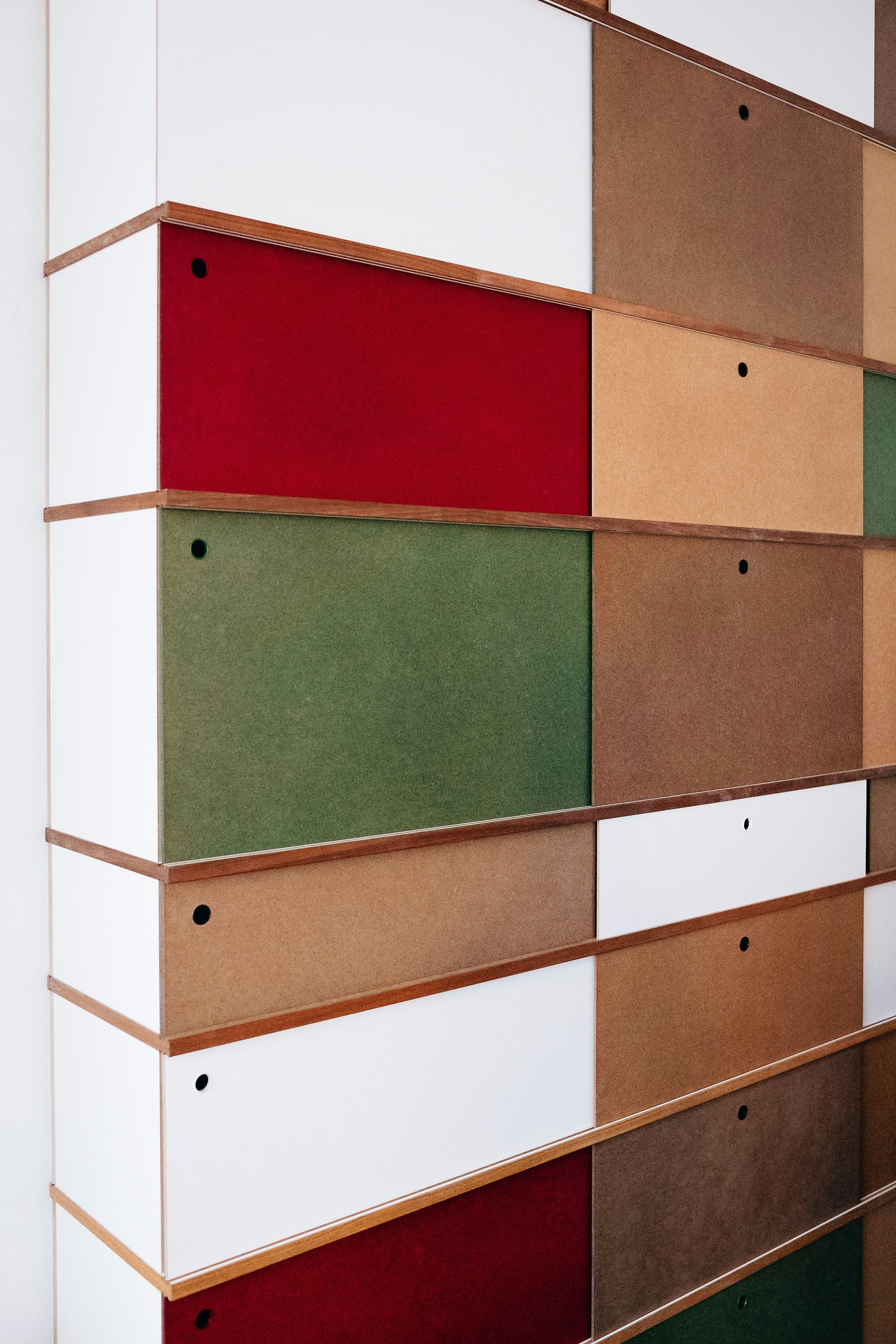 Was das Ökologische angeht, da haben wir natürlich Grenzen, weil wir die Werkstoffe von einer Firma kaufen. Da gibt es für die Inhaltsstoffe EU-Richtlinien, auf deren Einhaltung wir natürlich achten. Wenn ich es jetzt streng ökologisch sehen würde, ich glaube, man müsste ausschließlich mit Massivholz arbeiten. Aber nachhaltig ist ja auch die Art des Entwurfes, die Bauart, die Lebensdauer. Und ansonsten, wie wir arbeiten. Wir haben Ökostrom, wir haben kein Auto, alle fahren Fahrrad. Und wir versuchen immer Verpackungsmaterial einzusparen und darüber, ob man Kunststoffe nicht doch ersetzen kann mit Papier. Wie man es besser machen kann. Wir bemühen uns sehr! Es ist ein Prozess. Wir haben eine Unterseite zu unserer Philosophie, auf der man dazu noch weitere Informationen bekommen kann.