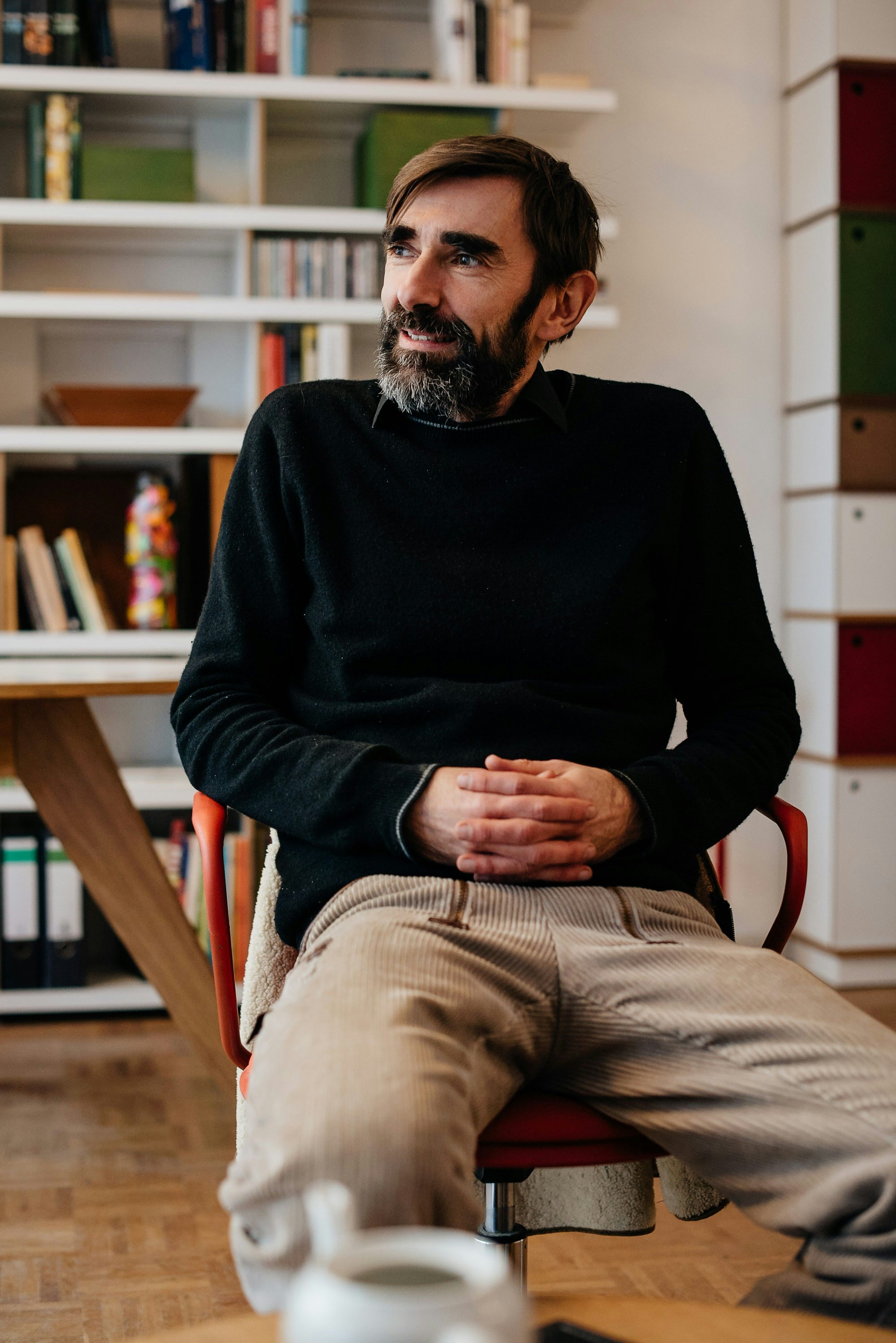 Nachdem Ralf uns in aller Seelenruhe durch sein kleines Reich bestehend aus Werkstatt, Lagerraum und gemütlicher Küche geführt hat, gibt es erst mal schwarzen Kaffee und wir genießen den Blick auf die ruhige Seitenstraße im Winskiez. Ralf holt uns mit seinen ruhigen Antworten, den langen Denkpausen und spitzen Witzen direkt wieder herunter. Denn dank eines BVG-Streiks sind sowohl Sophia als auch ich mit Verspätung und leicht abgehetzt zum Termin erschienen. Entspannt reden wir also über die DNA der seit 2006 bestehenden Marke, die ersten Möbelstücke entstanden auf Ralfs Dachboden und den immerwährenden Kampf um Anerkennung, den deutsches Design auf dem internationalen Markt ausfechtet.