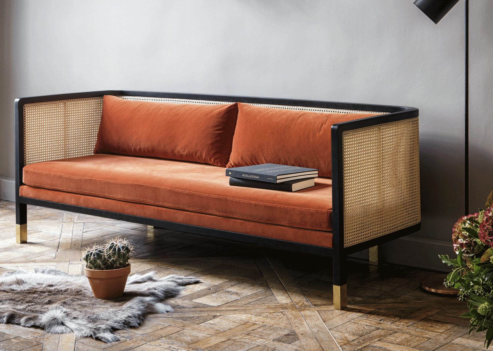 Das italienisch-dänische Designerduo GamFratesi, bestehend aus Designerin Stine Gam und Architekt Enrico Fratesi, steckt hinter diesem Traum von Schreibtisch. Der Allegory Desk ist mit einer großen Scheibe dampfgebogenem Buchenholz mit Wiener Geflecht versehen. Designt wurde der Tisch 2015 für Wiener GTV Design – Gebrüder Thonet Vienna GmbH. Die beiden sind übrigens alles andere als Unbekannte, sie stecken auch hinter vielen Designs von Gubi, Hay oder Casamania, inzwischen haben sie auch eine Leuchte für Louis Poulsen kreiert. Im selben Jahr erschien auch das Targa Sofa, erhältlich als Zwei- oder Dreisitzer und mit und ohne Messingfüße.