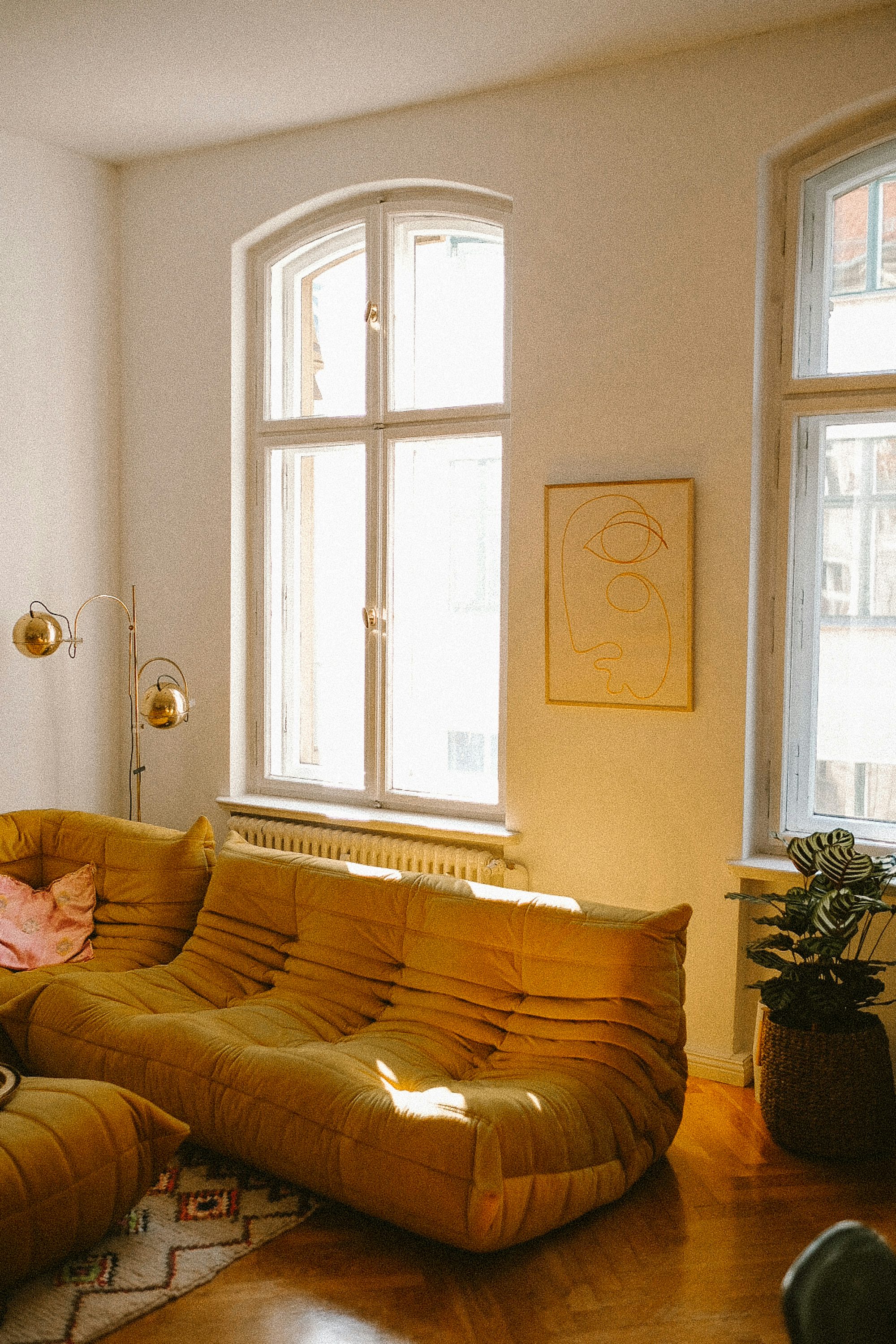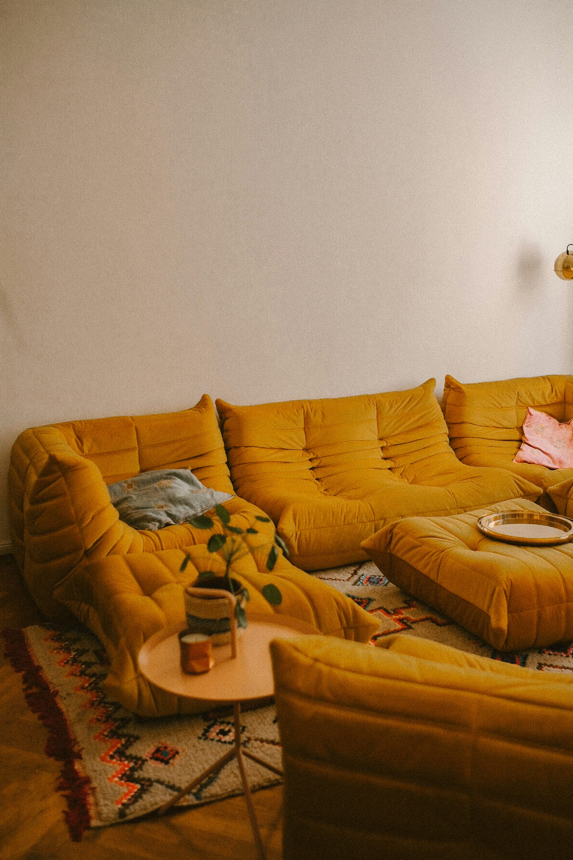 Mut, den braucht es, wenn man sich nicht nur ein Sofa zulegt, sondern gleich eine ganze Wohnlandschaft. Ein Wort, bei dem ich hoffe, dass es ganz bald ausstirbt, aber leider finde ich kein anderes, was unsere neue Liegewiese so gut beschreibt. Denn vor ein paar Wochen zogen bei uns fünf Elemente des Designklassikers Togo von Lignet Roset ein – und es gefiel uns so gut, dass wir noch einmal um ein Eckelement und einen Pouf aufstockten. Jetzt haben wir genügend Couch für eine aus dem Ufer gelaufene, auf Facebook veröffentlichte Einweihungsparty, für eine Fußballmannschaft an Kindern und Platz für den Mittagsschlaf einer ganzen Kommune.