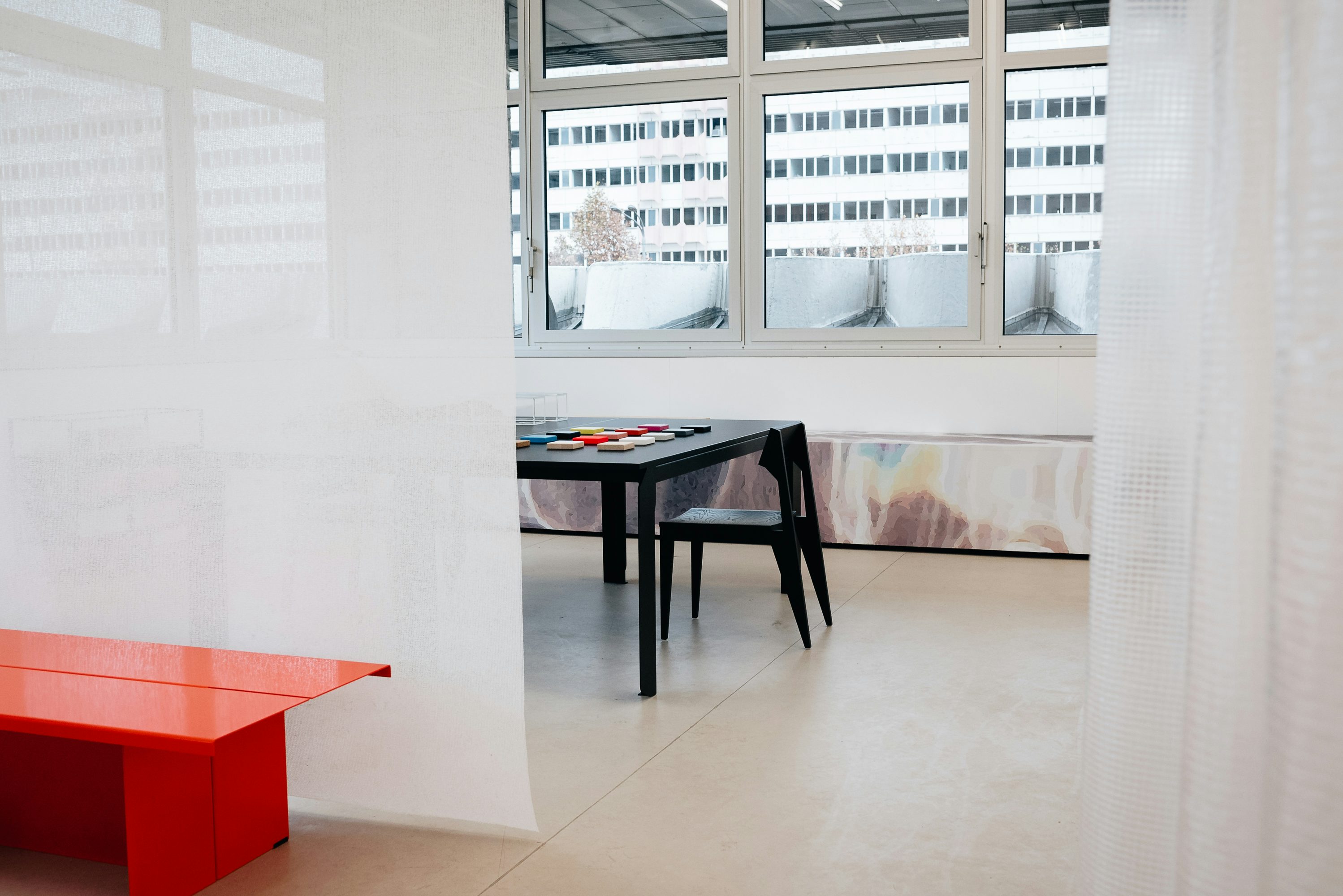 Es regnet in Strömen als ich das gigantische Loft von Objekte unserer Tage betrete, dennoch ist der große, mit halbdurchsichtigen Latexvorhängen unterteilte Raum von Licht durchflutet. Kein Wunder, schließlich bestehen drei Seiten aus Fensterfront. Zweidrittel von Objekte unserer Tage, Anton Rahlwes und Christoph Steiger (beide komplett in Schwarz), empfangen uns mit Kaffee am Tisch Meier und ich fühle mich direkt wie bei einem lockeren Gespräch in einer WG-Küche (nur mit mehr Platz und Licht und ohne das dreckige Geschirr in der Spüle). So jung und so erfolgreich? Klar, dass ich die beiden nach dem Erfolgsrezept von Objekte unserer Tage ausgefragt habe!