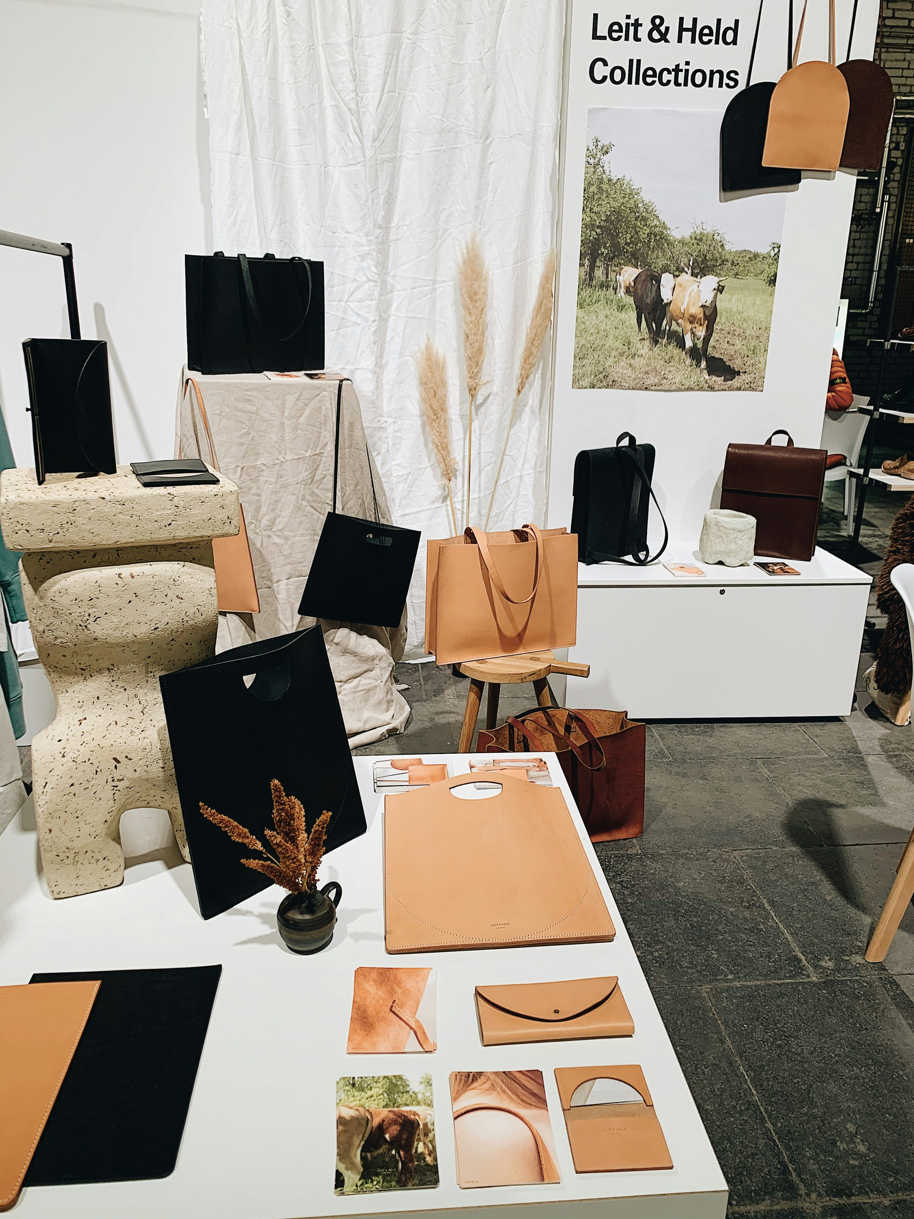 An Leit & Held bin ich im digitalen Alltag aufgrund von Zeitmangel schon einige Male vorbeigelaufen – im übertragenen Sinn, versteht sich. Auf der Neonyt konnte ich mir dann endlich mit Zeit im Gepäck die tollen Taschen anschauen und hatte zwei offene Ohren, um die Geschichte des Berliner Accessoires-Labels kennenzulernen. Leit & Held wurde 2018 von der Art Directorin und Designerin Pia Held, der Interior Architektin Dana Mikoleit und der Sustainability Managerin Nina Conrad gegründet.