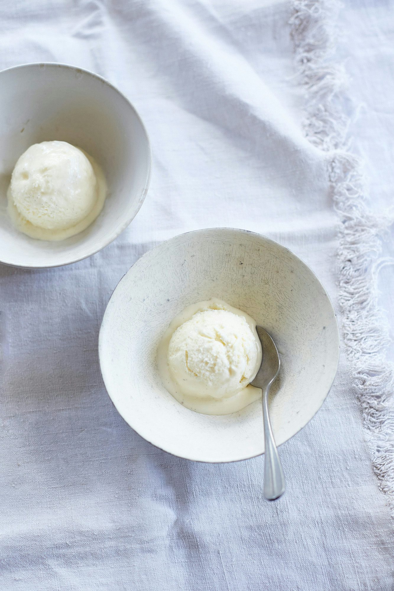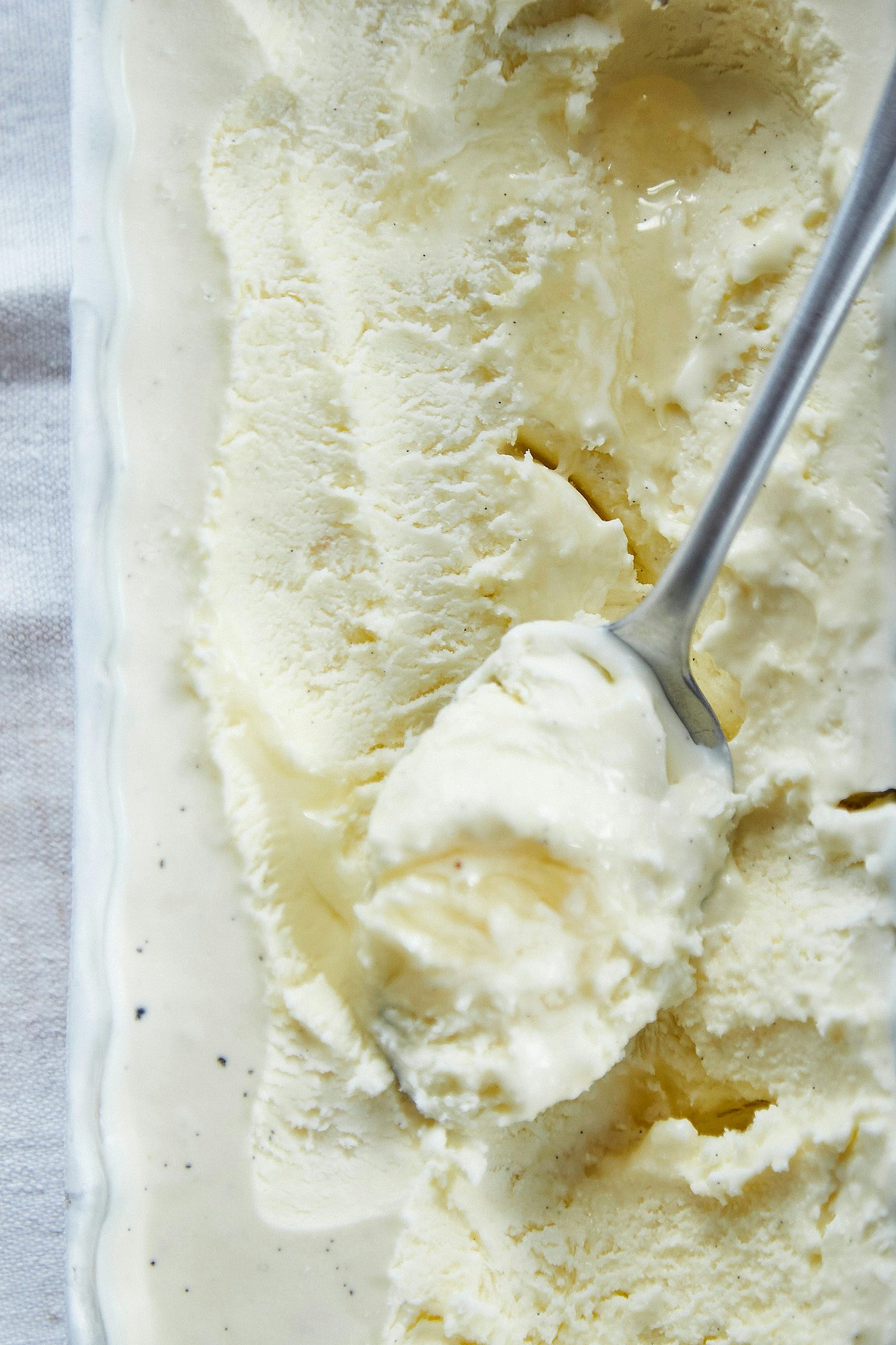 Der Trick bei diesem Rezept ist Wodka. Alkohol senkt den Gefrierpunkt, und durch den geringen Einsatz bleibt das Eis "cremig".