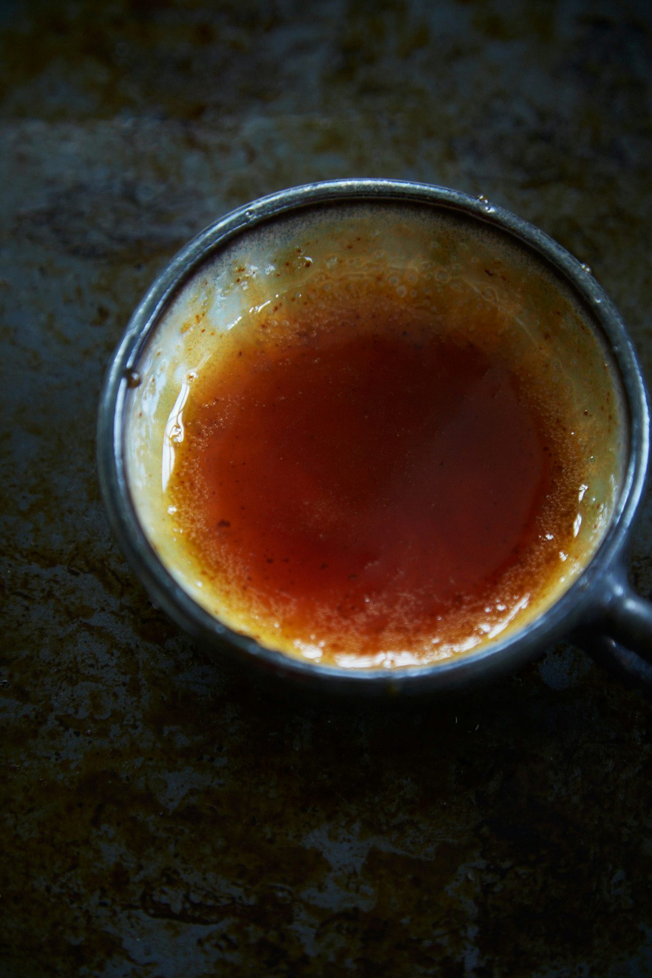 - Für das Miso-Karamell Agavendicksaft und Miso in einem kleinen Topf aufkochen, bis die Masse dickflüssiger wird, ca. 2 Minuten.