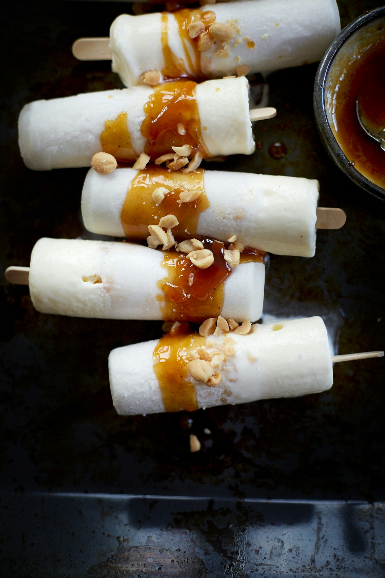 Das Rezept für Eis am Stiel mit Erdnussmus und Miso-Karamell