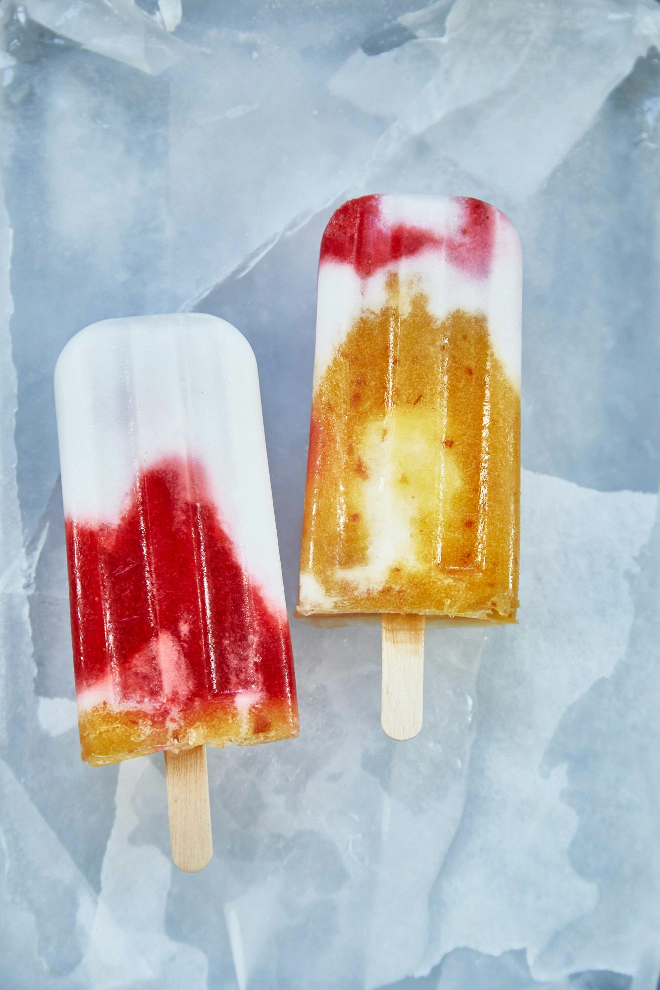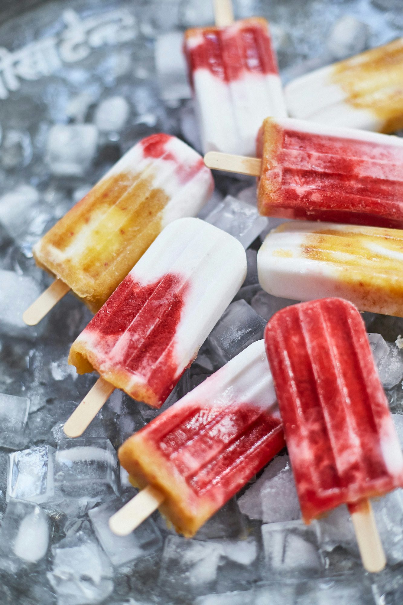 - Mischungen abwechselnd in die Form gießen. Eisstiele hineinstecken und über Nacht einfrieren, bis das Eis fest ist.