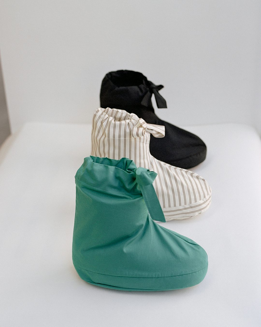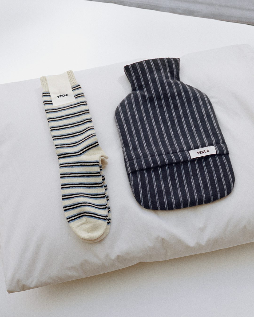 Zum einen stellt Tekla drei neue gedämpfte Farbtöne für seine limitierte Decken-Kollektion vor, die vom modernistischen Architekten Le Corbusier inspiriert ist. Die Mohair-Decken werden in Spanien aus feinstem Mohair mit Wollzusatz handgewebt und mit handgefertigten Quasten versehen. Zum anderen erweitert der dänische Hersteller sein Sortiment mit einer Holiday Kollektion, die saisonale Nachtwäsche und Bademäntel, eine aktualisierte Kinderkollektion sowie Geschenksets mit Boxershorts, Handtüchern und einem speziellen Winterbadeset umfasst. Außerdem wurde eine Reihe von Accessoires eingeführt, darunter Mützen, eine Wärmflasche sowie Daunensocken, die es uns als Frostbeulen besonders angetan haben.