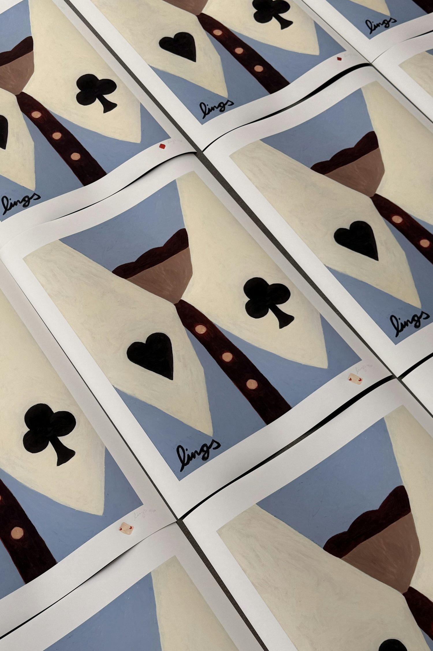 In „Curioser & Curioser“ verbindet Bings ihre aktuelle Kragenstudie mit Elementen aus der Kartensymbolik und hat ein Motiv geschaffen, das wir nur zu gern unter dem Weihnachtsbaum finden würden. Der Fine Art Print ist auf 50 Stück limitiert und wird handsigniert und individualisiert geliefert. Run, don’t walk!