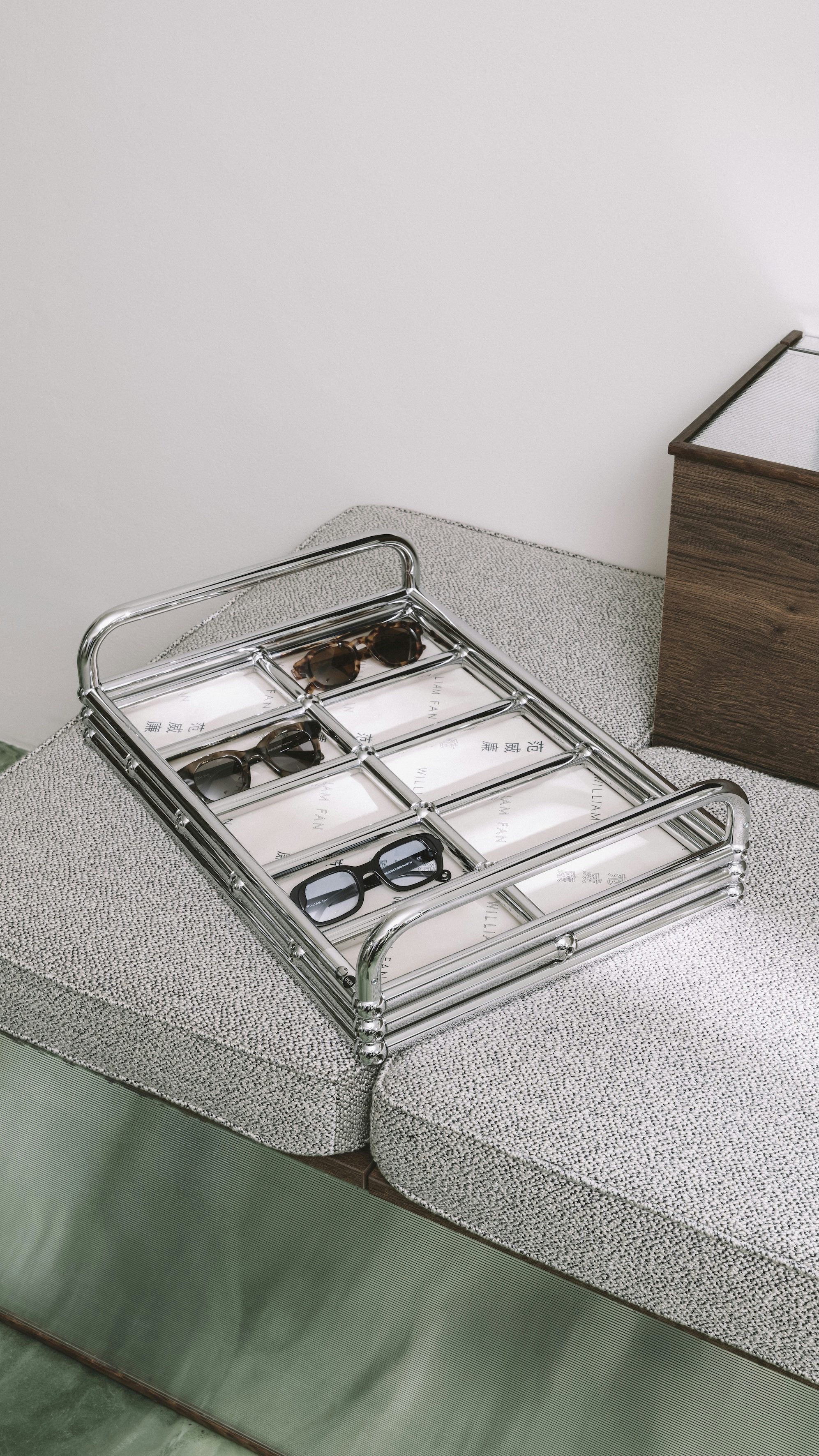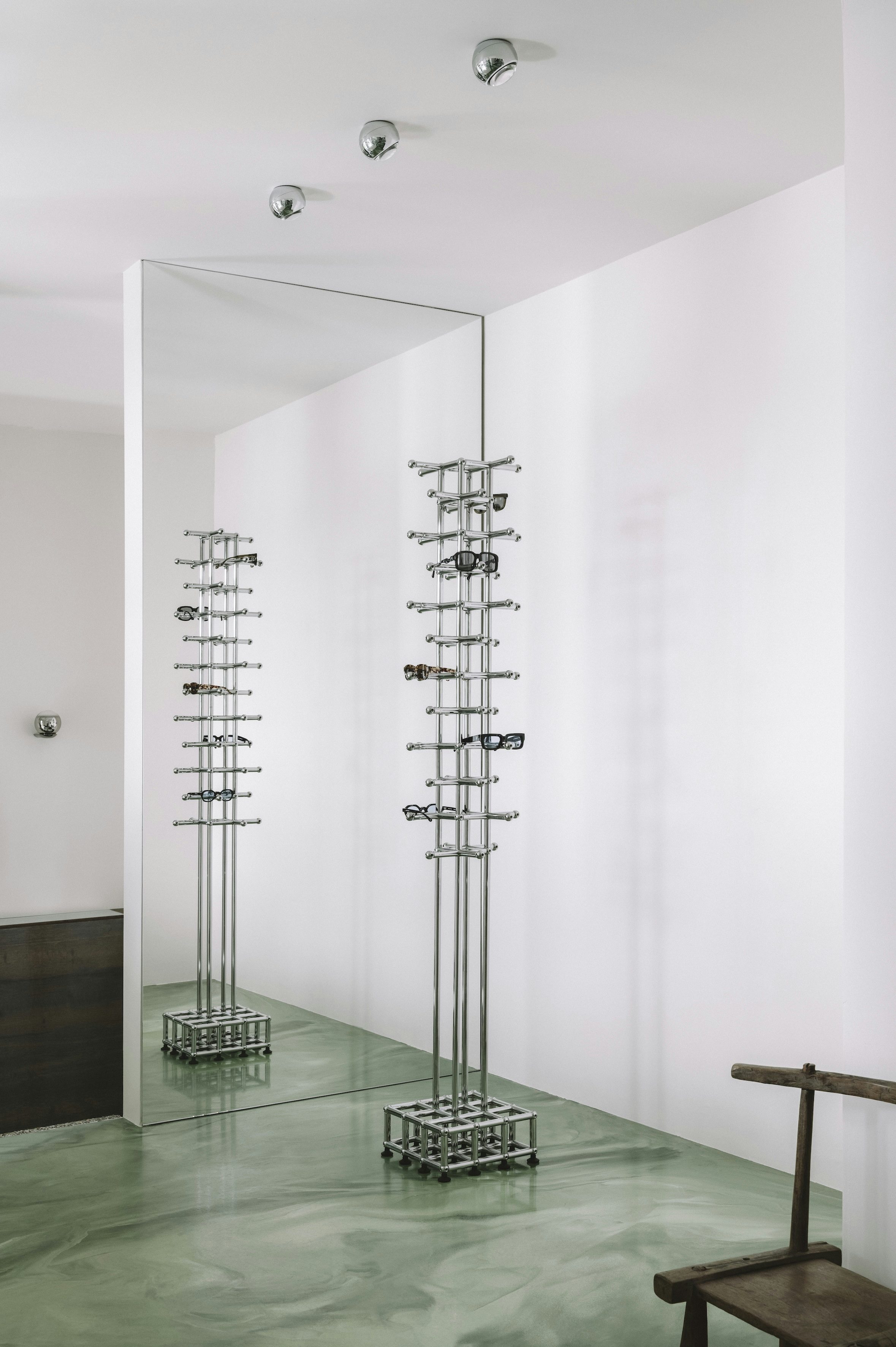 Der Raum rückt die asiatischen Wurzeln des Labels noch stärker in den Mittelpunkt und vermittelt die Atmosphäre einer Anprobe im eigenen Wohnzimmer: vertraut und persönlich, doch ebenso offen für kulturellen Austausch. Reduzierte USM Möbel bilden das Fundament, ergänzt durch speziell entwickelte Accessoires wie Spiegel, Vitrinen und Tabletts. So entstehen Möbelstücke, die sich nahtlos ins Store-Design einfügen und zugleich ausdrucksstark Fans Kollektionen rahmen. Das Ergebnis ist ein Showroom, der – getragen von der klaren Formsprache von USM und der kosmopolitischen Handschrift von William Fan – zur Bühne für Identität wird.