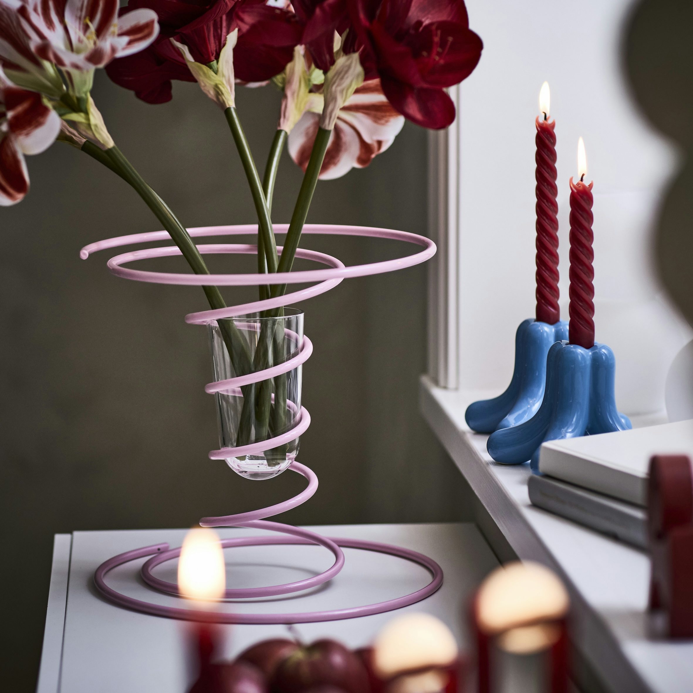 Zwischen Rot und Grün treten Rosa, Babyblau und Kaugummi-Pink auf den Plan, während kurvige, skulpturale Teller, Tassen, Vasen, Kerzenhalter und eine tragbare Leuchte seine unverkennbare Handschrift tragen. Der „Köttbullar“-Teller ist Westmans augenzwinkernde Hommage an eine schwedische Weihnachtstradition. Auch seine Erinnerungen an die „Fika“-Kultur fließen ein: eine Glögg-Tasse mit übergroßer Untertasse bietet Platz für Gebäck. Dabei ist jedes Stück mehr als Dekoration, es ist eine Einladung, das Feiern neu zu denken.