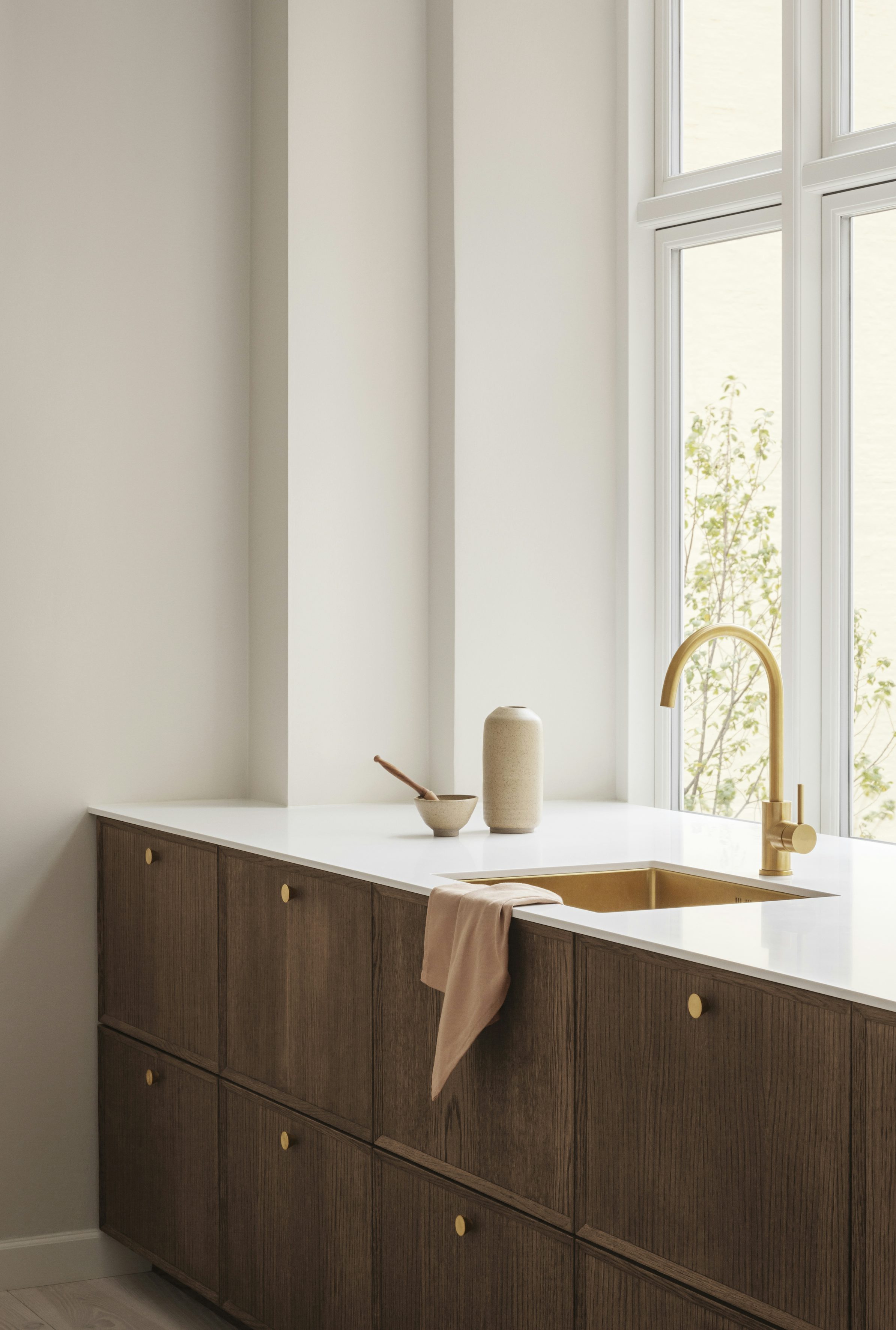 Jeppe: Wir können uns nicht von unserem dänischen bzw. skandinavischen Ansatz lösen, aber wir wollen uns auch nicht nur auf einen bestimmten Stil festlegen. Nächstes Jahr bringen wir eine neue Shaker-Küche auf den Markt, die eher in eine romantische Richtung geht. Wir haben zweieinhalb Jahre daran gearbeitet, wie eine moderne Shaker-Küche aussehen kann und kamen zu dem Schluss, dass man daran nichts neu erfinden kann. Stattdessen bringen wir jetzt mit verschiedenen Griffen moderne und unerwartete Elemente in die Landhausküche ein. Wir arbeiten dafür mit vier verschiedenen Designer*innen und Handwerker*innen zusammen, die mit vier verschiedenen Materialien arbeiten.