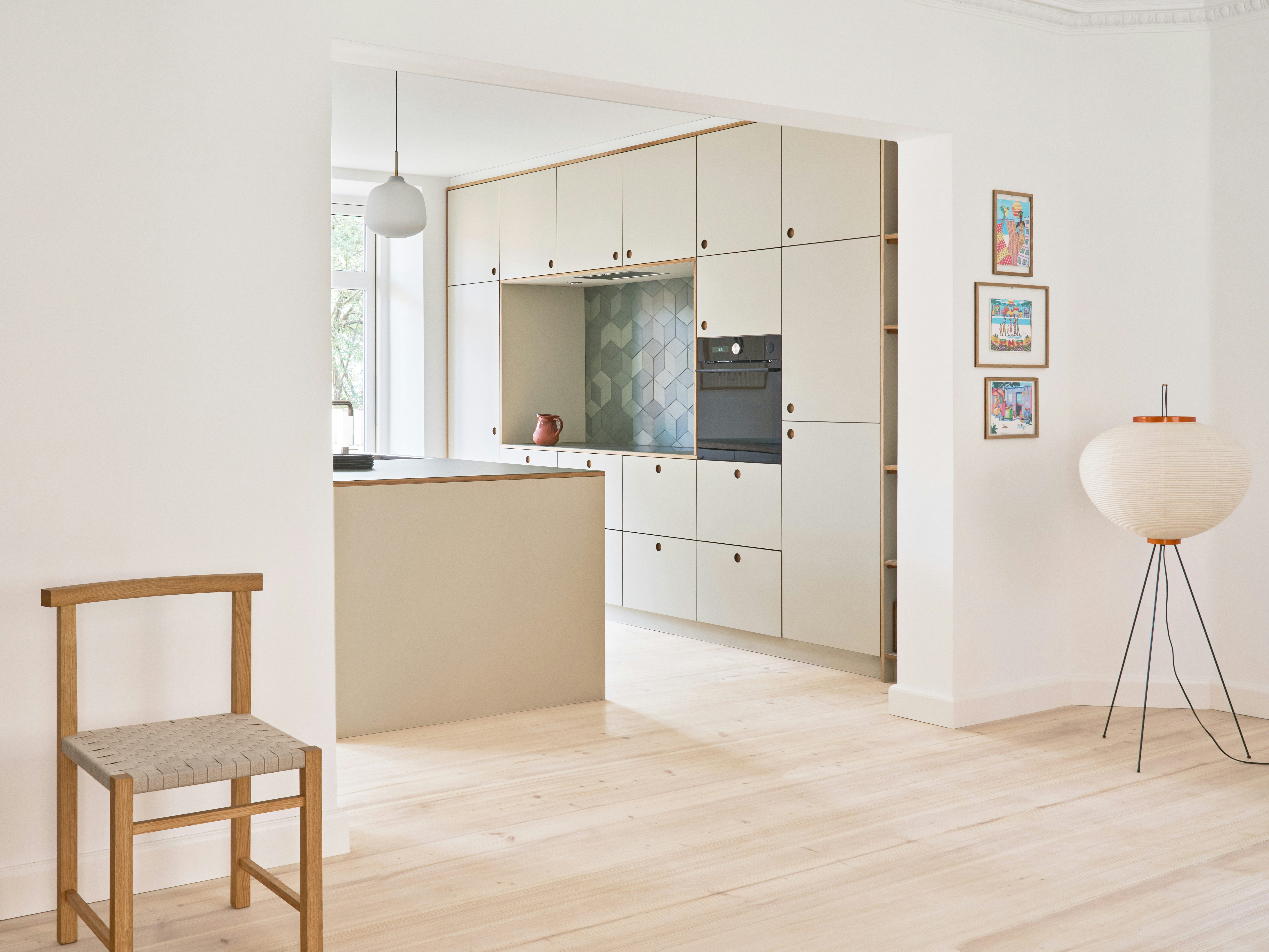 Jeppe: Das ist ein Vorurteil, was viele Leute haben, sie denken, dass Pressspan eine schlechte Qualität hat. Wenn man eine Küche baut, ist eines der wichtigsten Themen Stabilität. Eine Küche besteht ja aus vielen Brettern – und die dürfen sich auf keinen Fall verbiegen oder sogar durchhängen. Das formstabilste Material dafür ist Pressspan oder MDF.
