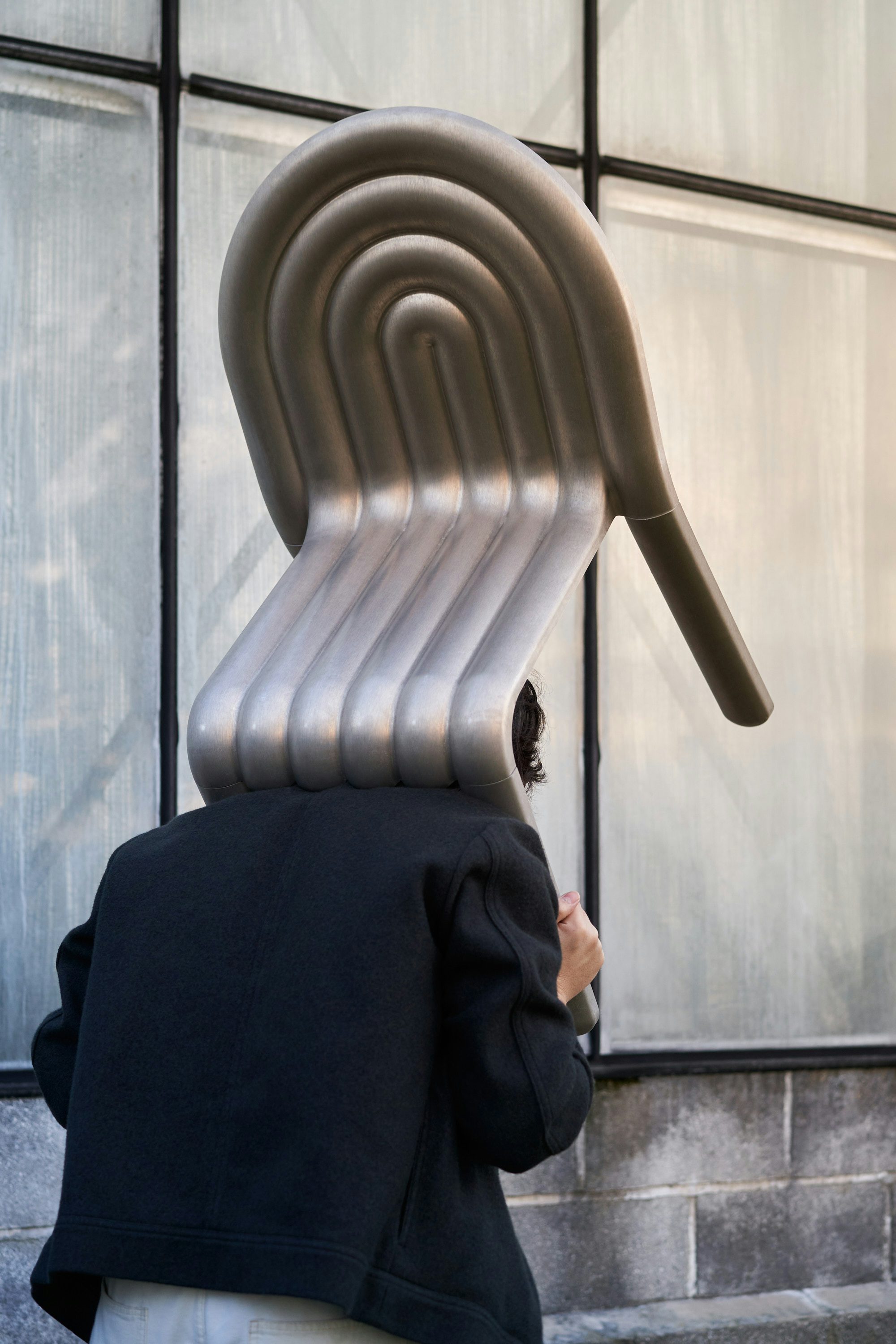 Tom Dixon ist nun wirklich nicht für seine Stühle bekannt, sondern für seine atemberaubenden Lampen. Trotzdem ist das, was mir am meisten im Gedächtnis blieb nach dem Besuch des Showrooms in Kopenhagen ein Stuhl, nämlich der Hydro Chair. Er ist eine limitierte Edition in Zusammenarbeit mit Hydro, dem größten Aluminium-Hersteller der Welt. Mit einem ganz speziellen Prozess wird er in Kanada in die Form geblasen, er sitzt sich extrem gut und sieht sowohl drinnen als auch draußen gut aus.