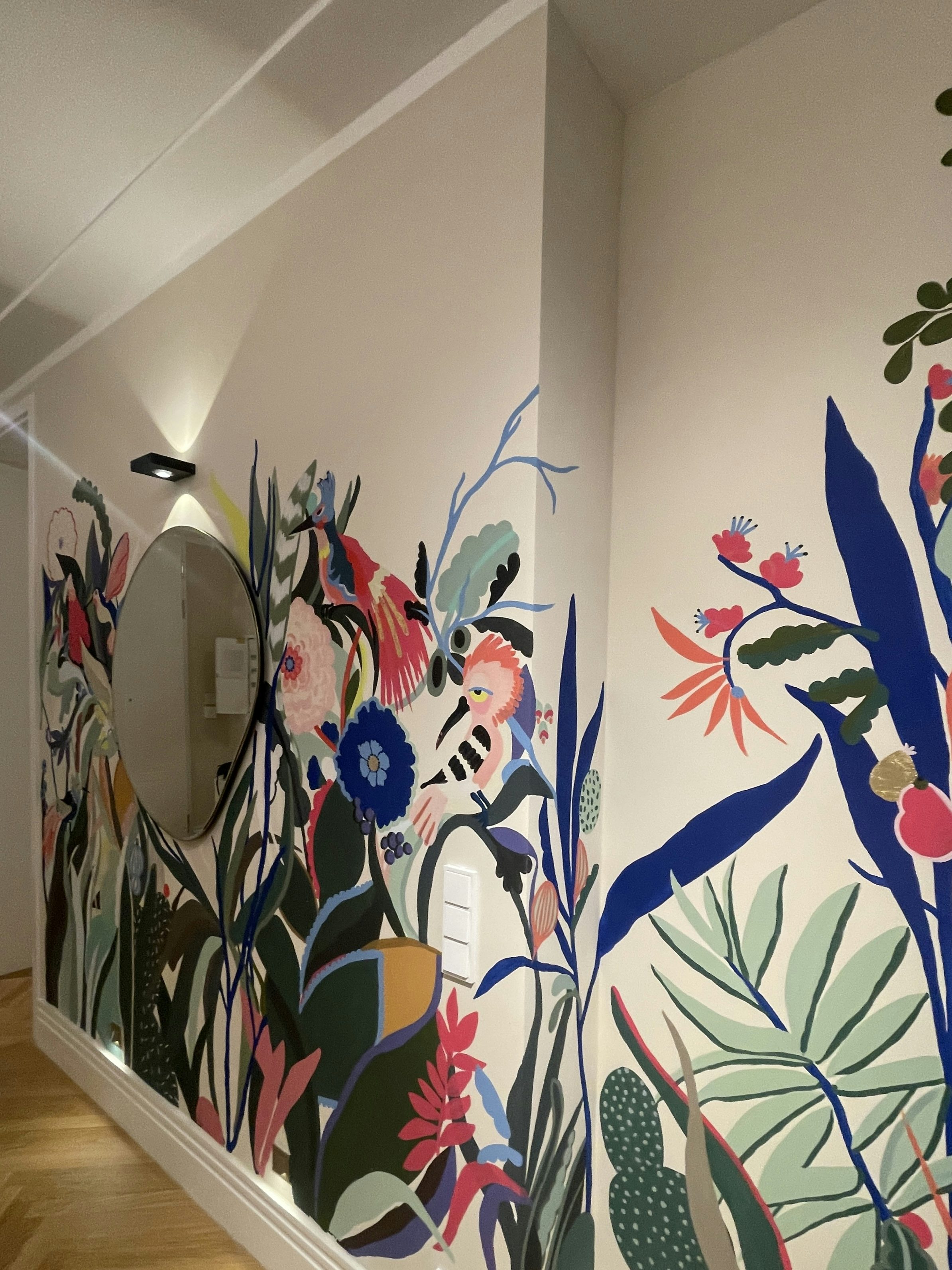 Letztes Jahr entschied ich mich das ganze etwas professioneller anzugehen und mich auf Wandkunst zu fokussieren. Dabei will ich mich aber nicht festlegen: Maison Mural steht für Wandgemälde, gedruckte Tapeten, Leinwände, skulpturale Arbeiten. Mal sehen, was noch alles kommt!