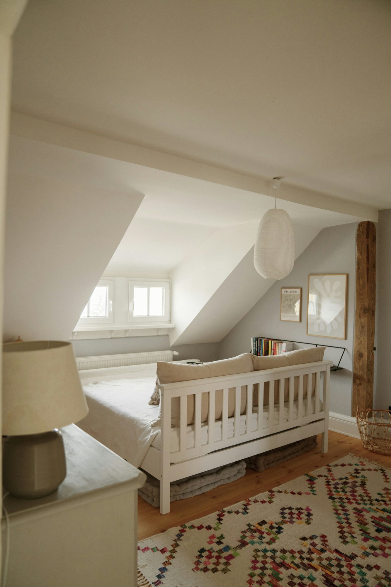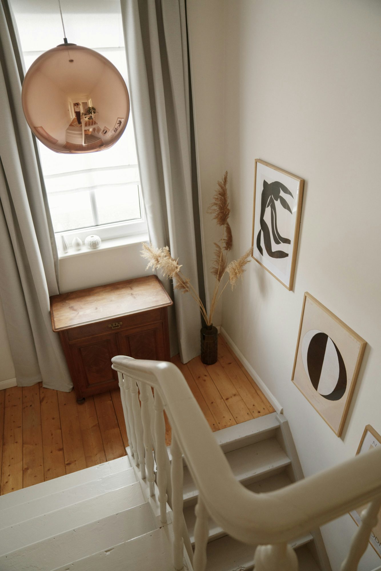Und mit dem Umzug aufs Land ging vor allem nicht nur eine räumliche Veränderung einher, sondern auch der Lifestyle von Alexa hat sich um 180 Grad gedreht. Während ich sie früher meistens mit einem Coffee-to-go, Celine-Schuhen, einem Isabel Marant-Sweater und ihrer Tochter in der Babytrage auf der Straße antraf, macht sie jetzt in lässigen Jeans, Fell-Birkenstocks und ohne Handtasche den Kaffee in ihrer Küche selbst. Vor der Tür stehen Gummistiefel in diversen Varianten.