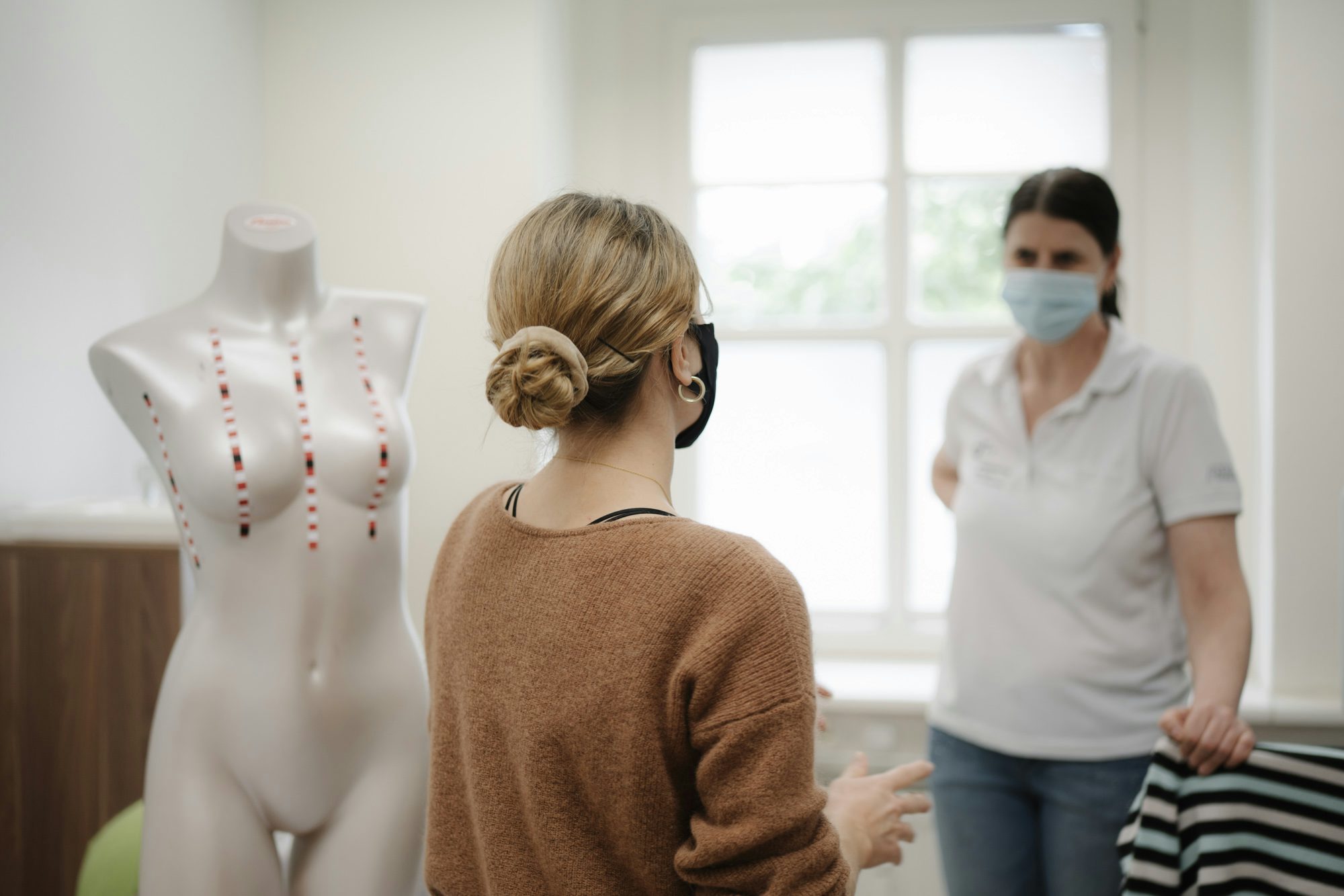 In der Ausbildung selbst gibt es einen theoretischen und einen praktischen Teil. Man lernt medizinische Fachtermini, Anatomie, den Aufbau der Brust, über Tumore, Entwicklung und Behandlung. Das ist wichtig, da wir uns mit den Ärzt*innen auf Augenhöhe austauschen und wissen müssen, worüber wir sprechen. Man lernt hier natürlich auch die ganz bestimmte Tasttechnik. Wir nennen sie liebevoll den MTU-Walzer (lacht) …