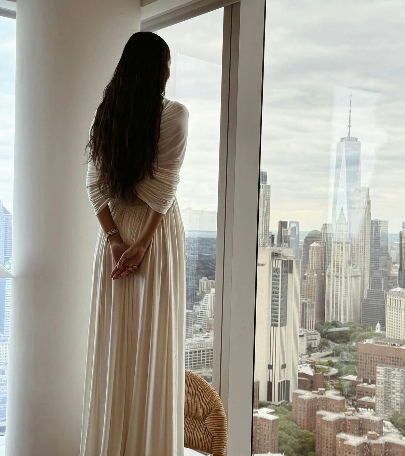 Und da kommt sie auch schon, eine knappe Stunde wegen des New Yorker Verkehrs zu spät: Babba Rivera. Stil-Ikone, Unternehmerin der neuen Generation, ehemalige Gründerin einer angesagten PR-Agentur – heute CEO der Kult-Haarpflegemarke Ceremonia. Und Mutter von vier Kindern. Als sie schließlich auftaucht, sieht sie aus, als wäre sie gerade einem Magazin-Cover entsprungen: strahlend schön im weißen Abendkleid, völlig unbeeindruckt vom Großstadttrubel um uns herum. Wir landen auf zwei Metallstühlen auf dem Bürgersteig in Midtown, das Café hat längst geschlossen, die U-Bahn rumpelt unter uns, Autohupen liefern den Soundtrack. Es ist alles andere als ein klassisches Interview-Setting – und doch fühlt es sich irgendwie genau richtig an.