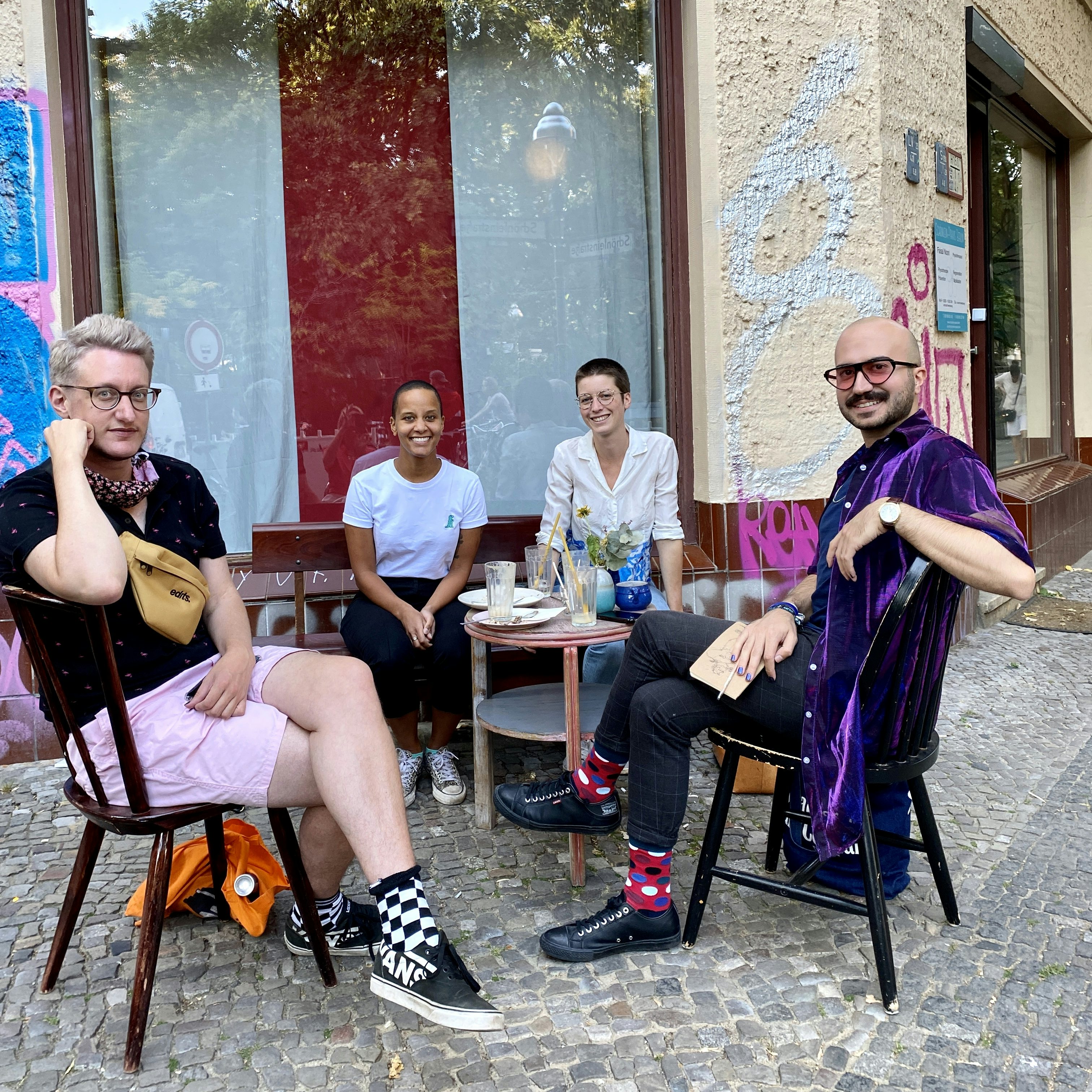 Genau, ganz allein würde ich das alles gar nicht schaffen, finde es aber auch viel schöner, als Team zusammenzuarbeiten. Linus und Fiamma sind Teil des festen Kerns, dann gibt es noch die beiden Architektinnen und eine Grafikerin. Heute waren wir in der Tischlerei Baufachfrau zu Gast, die Tischlerinnen dort werden hoffentlich unsere Möbel bauen. Unsere Idee ist es, möglichst mit Frauen oder queeren Personen zusammenzuarbeiten. Obwohl ich die ursprüngliche Gründerin bin und das Projekt finanziere, ist Linus Teil des Buchhandelsteams, sucht die zukünftigen Angestellten und Bücher mit mir aus und wird später ähnliche Befugnisse haben wie ich. Und Fiamma managed das Café.