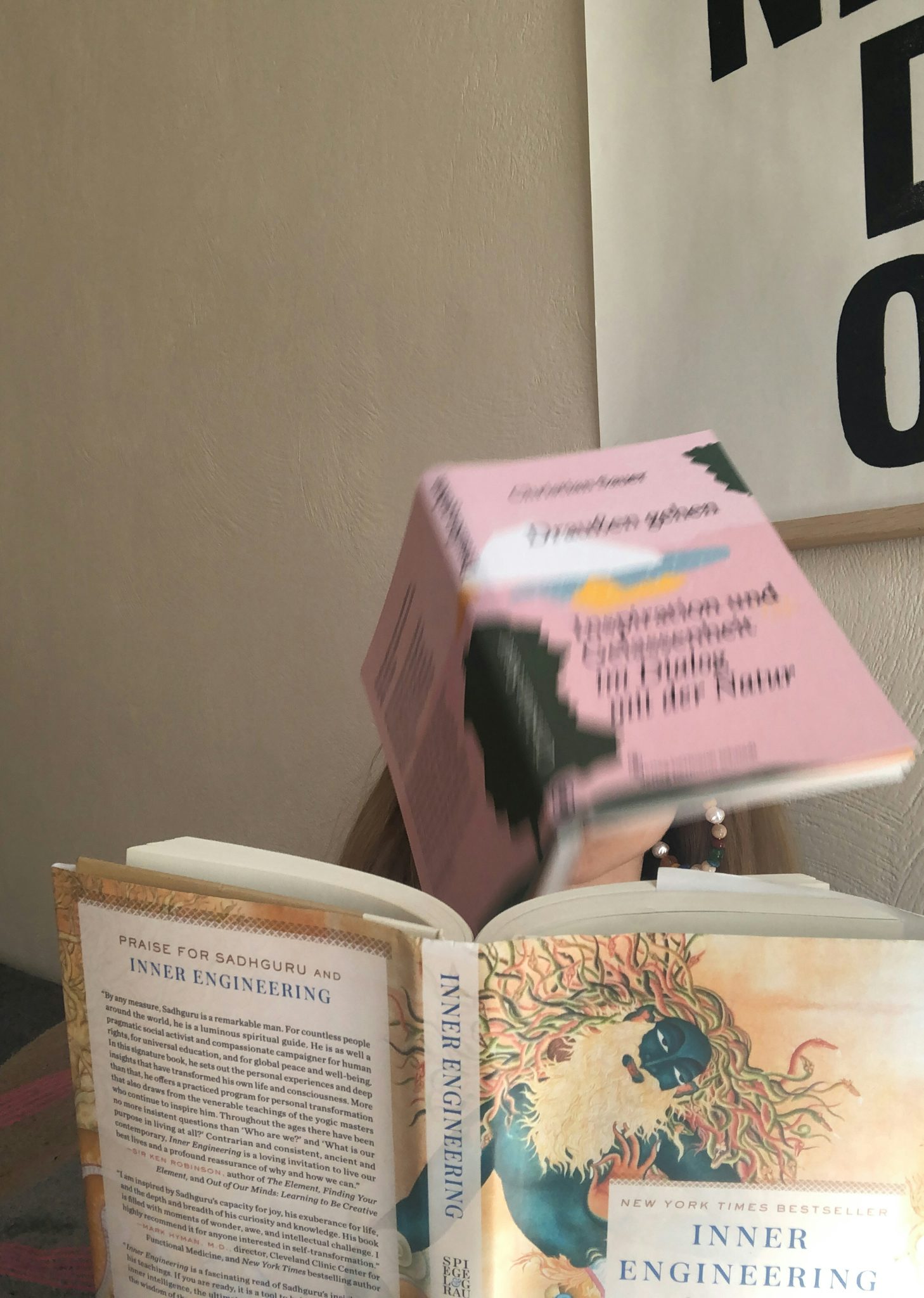 Gute und gerne etwas abgedrehte Popliteratur hatte immer einen festen Platz in meinem Bücherregal, muss sich zwischenzeitlich den Platz aber mit Sach- und spirituelle Bücher teilen. Mein Yoga spielt hier natürlich eine große Rolle, aber ich habe mich auch vor meiner Yogalehrerausbildung schon viel mit Meditation, Pranayama, Ruhe finden und dem ganzen Kram beschäftigt. Ich glaube, das ist normal, wenn man auf Mitte dreißig zugeht. Oder?