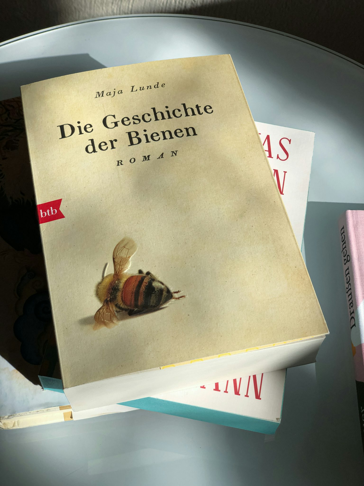 Die Menschen und die Bienen. Eine spannende, traurige, abenteuerliche und unfaire Beziehung. Wie gehen wir mit der Natur um? Was hinterlassen wir unseren Kindern? Und warum spielen diese kleinen, gestreiften, haarigen Insekten so eine wichtige Rolle für das Gleichgewicht unserer Welt? Der Roman „Die Geschichte der Bienen“ von Maja Lunde nimmt uns mit durch die Zeit. Vom Jahr 1852 in die Jetztzeit bis in das Jahr 2098. Ich freue mich darauf, mit diesem Buch zu beginnen. Das Thema Bienen lässt mich seit der Dokumentation „More Than Honey“ von Markus Imhoof aus dem Jahr 2012 nicht mehr los.