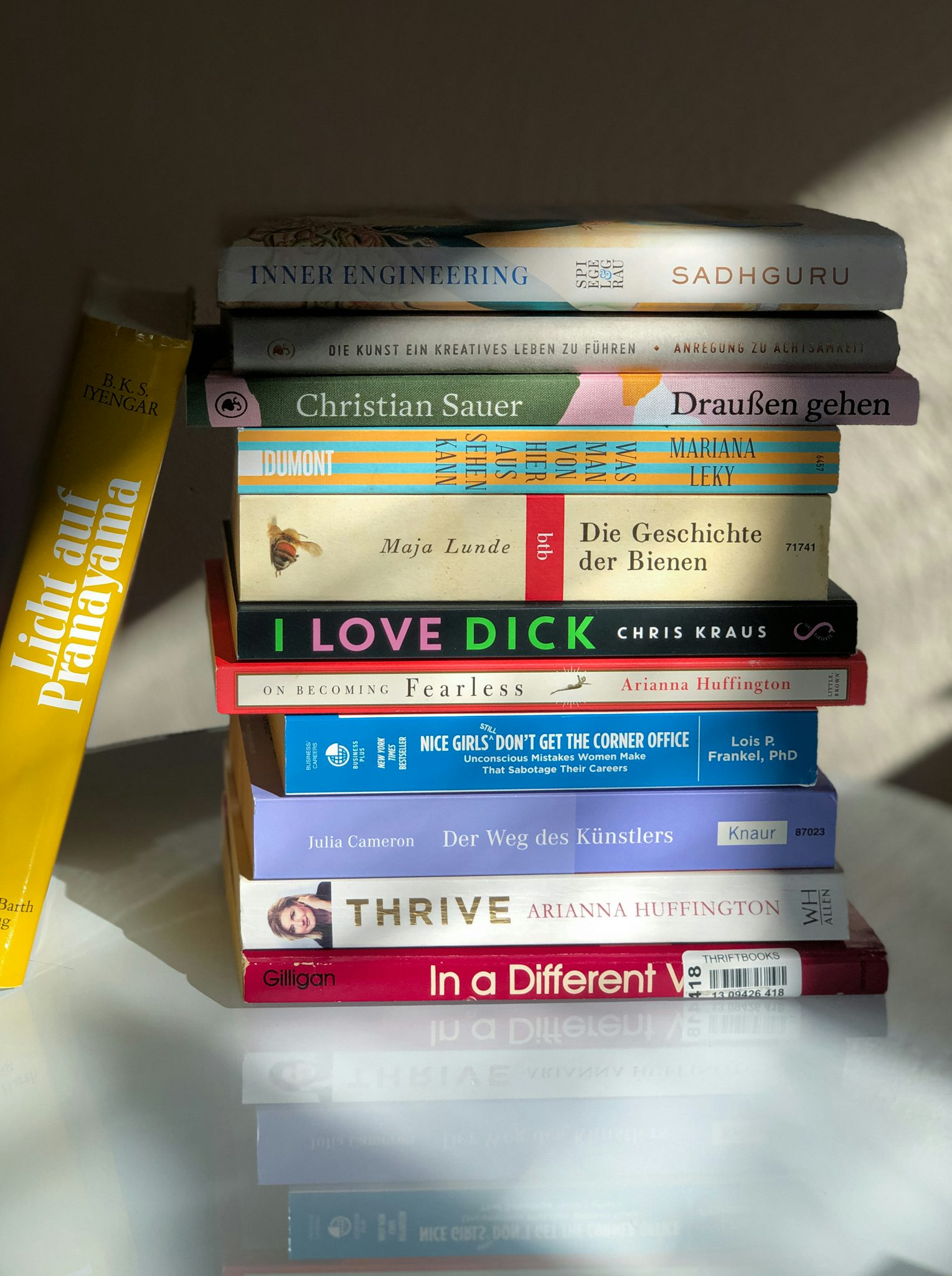 Arianna Huffington, Sheryl Sandberg, Lois P. Frankel, Carol Gilligan ... ich habe sie alle – aber ich habe sie nicht alle gelesen. Hinzu kommt die Tatsache, dass die meisten dieser Bücher, so leider auch „Lean In“, einen elitären Feminismus wiedergeben, dem ich heute auf keinen Fall mehr zustimmen würde. Es folgte eine Reihe Bücher, die ich mal ganz schamlos in die Abteilung „Selbsthilfe“ schieben würde. Oder meinetwegen Selbstoptimierung.