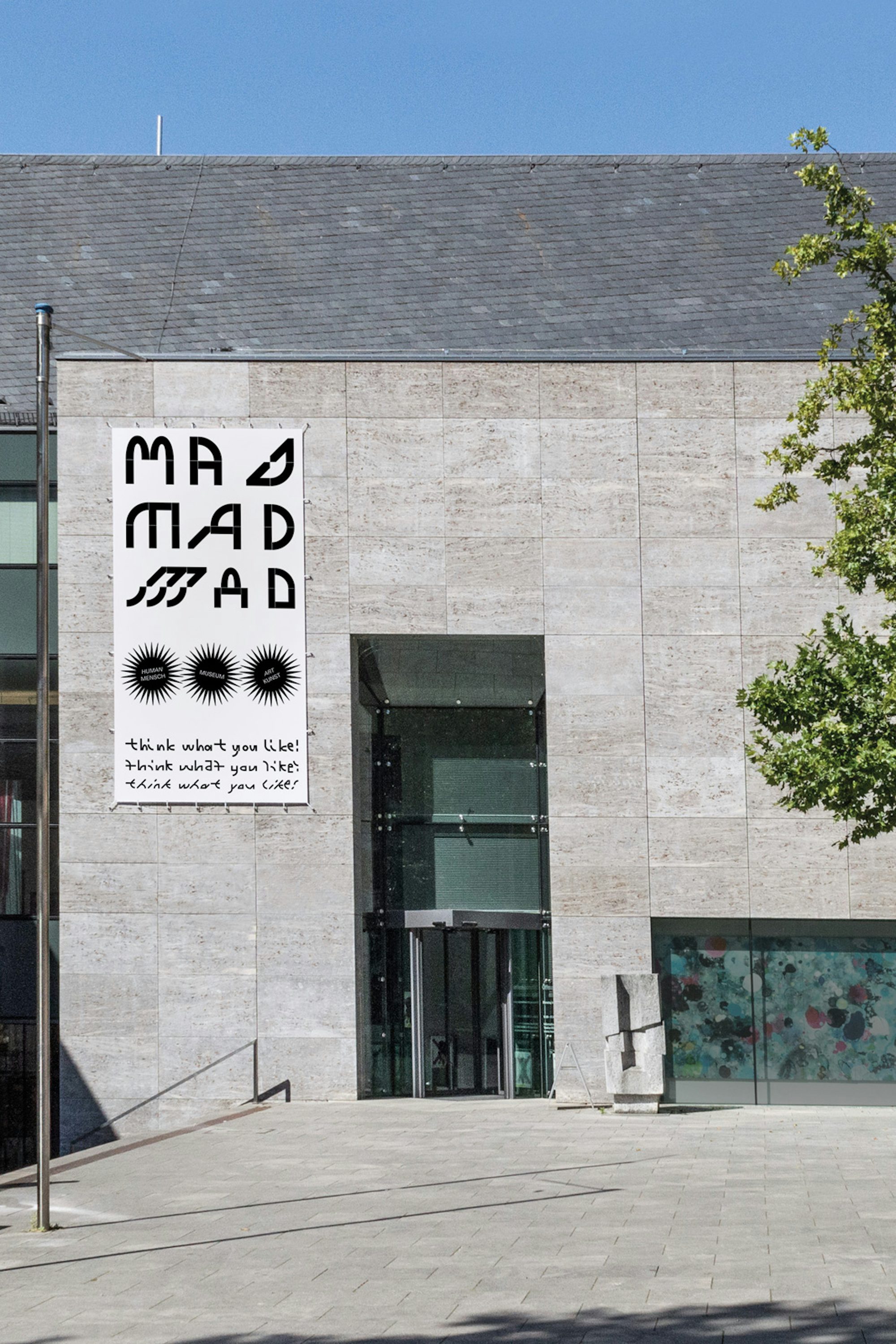 Alle wollen Veränderungen, aber wissen nicht, wo sie anfangen sollen. So ein Transformationsprozess fängt für uns immer mit der engen Auseinandersetzung mit dem Museums-Team an. In Workshops, bei denen es darum geht, erstmal komplett frei an die Sache ranzugehen und alte Denkmuster zu durchbrechen. Über spielerische Kreativ-Methoden werden folgende Fragen beantwortet: Welche Vision habt ihr als Museum? Wofür steht das MAD eigentlich? Was hat das Museum für Alleinstellungsmerkmale, vor allem in der Stadt Würzburg? Für wen wollt ihr überhaupt attraktiv sein? Dieser ganze intensive Prozess hat uns sehr geholfen, ein Design zu entwickeln, das vor allem die neu definierte Hauptzielgruppe 18-35-jährige Personen ansprechen soll. In Würzburg war das sehr spannend, weil wir dort ja auch einen Standort mit unserem Büro haben und selbst Teil der Subkultur sind. Vor allem dadurch haben wir auch diesen Auftrag bekommen, weil wir in Würzburg selbst eine Ausstellung gemacht haben und der Museumsdirektor so auf uns aufmerksam geworden ist.