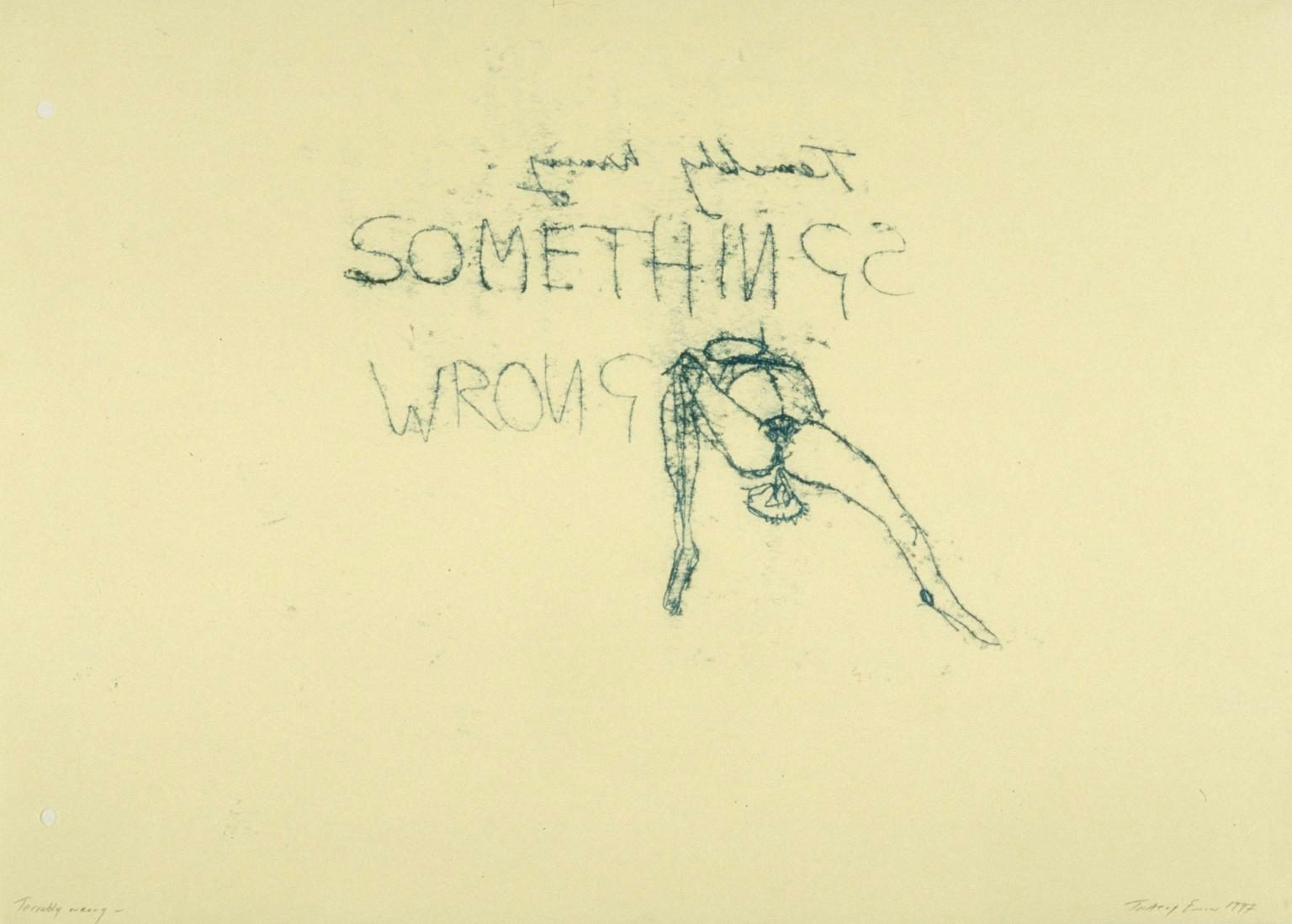 Tracey Emins Arbeiten drehen sich häufig um Erlebnisse aus ihrer Vergangenheit, sie basieren auf ihrer eigenen Emotionalität und Verletzlichkeit. Terribly Wrong (1997) ist eine von mehreren Zeichnungen, die sich mit einer „Höllenwoche“ beschäftigen, die die Künstlerin im Jahr 1994 durchlebte. In dieser Zeit hatte Emin nach eigenen Berichten eine Zahn-OP, eine Abtreibung und trennte sich von ihrem Lebensgefährten. Die Zeichnungen wirken schnell ausgeführt, Emin hat sie mit kurzen Texten ergänzt, die Schrift wirkt fahrig. Dadurch spiegeln die Bilder ihre Gefühlswelt eindrucksvoll wider.