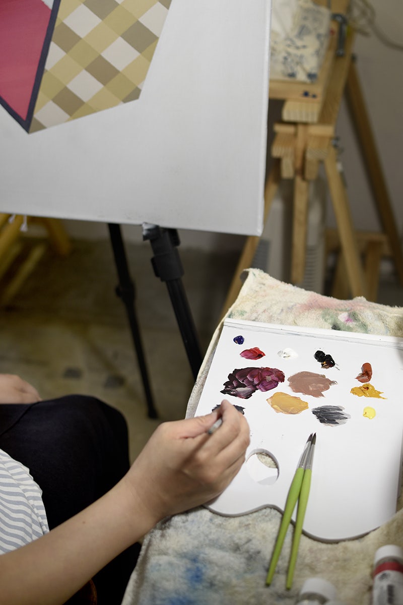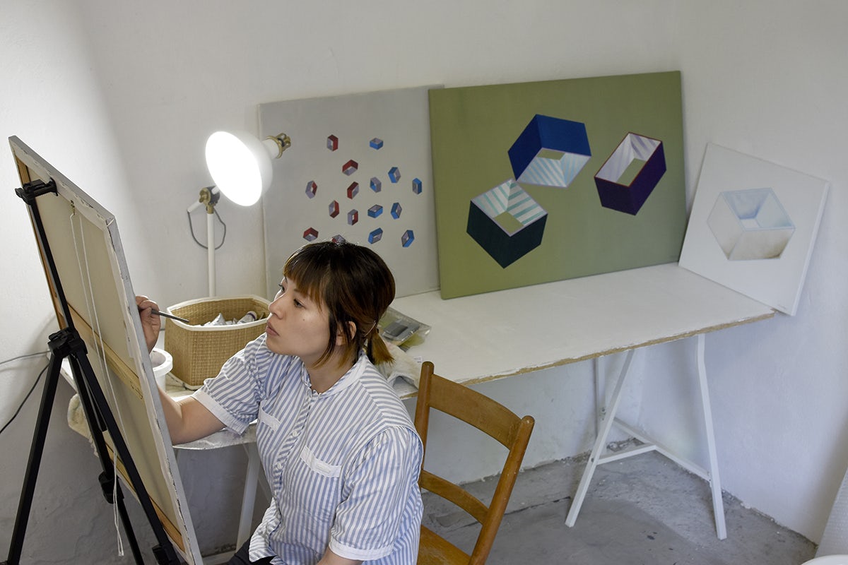 Mein Vater ist Möbeltischler von Beruf und hat die Firma übernommen, die von meinem Großvater gegründet wurde. Auch meine Mutter arbeitet in dieser Firma und malt nebenbei japanische Bilder. Schon als Kind habe ich mich daher für viele kreative Dinge interessiert. Neben meinem Studium und meiner Arbeit als Grafikerin habe ich immer auch Gemälde gemalt und an einigen Ausstellungen teilgenommen. So konnte ich im Internet Kontakt zu einer Kunstagentur in Deutschland knüpfen. Damals habe ich noch in Japan gewohnt, weshalb ich meine Werke per internationalem Paket nach Köln und Berlin geschickt habe um sie dort auszustellen. 2017 bin ich dann endgültig nach Berlin gezogen.