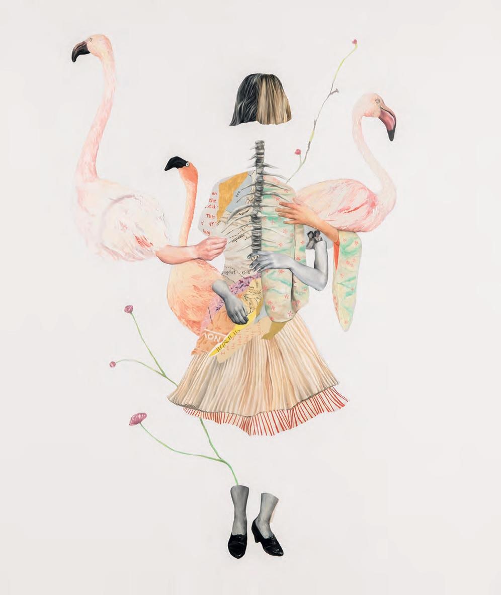 Ihre Kunstwerke sind Sammlungen unterschiedlichster Eindrücke, Erfahrungen und Materialien. In Collagen verknüpft sie alte Postkarten, Magazinausschnitte und Malerei, spielt mit Körperformen und Gender und lässt so neue Figuren entstehen, die in den Betrachtenden individuelle Erinnerungen wach kitzeln. Die auf diese Art entstehende Verknüpfung verschiedener Kulturen und Identitäten zeichnet sich in den vieldeutigen, aussagestarken Arbeiten der Künstlerin ab.