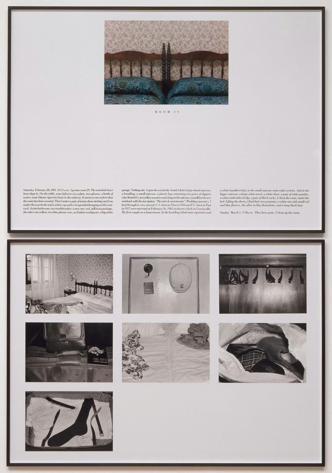 Die französische Konzeptkünstlerin Sophie Calle (*1953) ist, so scheint es, ständig auf der Suche nach Aspekten ihrer Identität, die sie zu ergründen versucht. Für „The Shadow“ (1981) ließ sie sich von einem Detektiv durch Paris verfolgen und jeden ihrer Schritte dokumentieren. In ihrer Arbeit „The Hotel“ (1981) nahm sie einen Job als Zimmermädchen an und dokumentierte akribisch die Hinterlassenschaften fremder Hotelgäste in Venedig. „The Address Book“ (1983) wurde durch ein Notizbuch inspiriert, das Sophie Calle auf der Straße fand. Sie rief jede dort verzeichnete Telefonnummer an und befragte die Menschen nach dem Besitzer des Buches um ein Bild von ihm zu bekommen. Aus den verschiedenen Antworten erstellte sie eine Multimedia-Installation. Calle veröffentlicht ihre Liebesbriefe, Tagebucheinträge und private Notizen und legt auf diese Weise einen scheinbaren Seelen-Striptease hin. Sie arbeitet mit Fotografien, Texten und Film und thematisiert eigene und fremde Emotionalität, Intimität und Kontrolle.