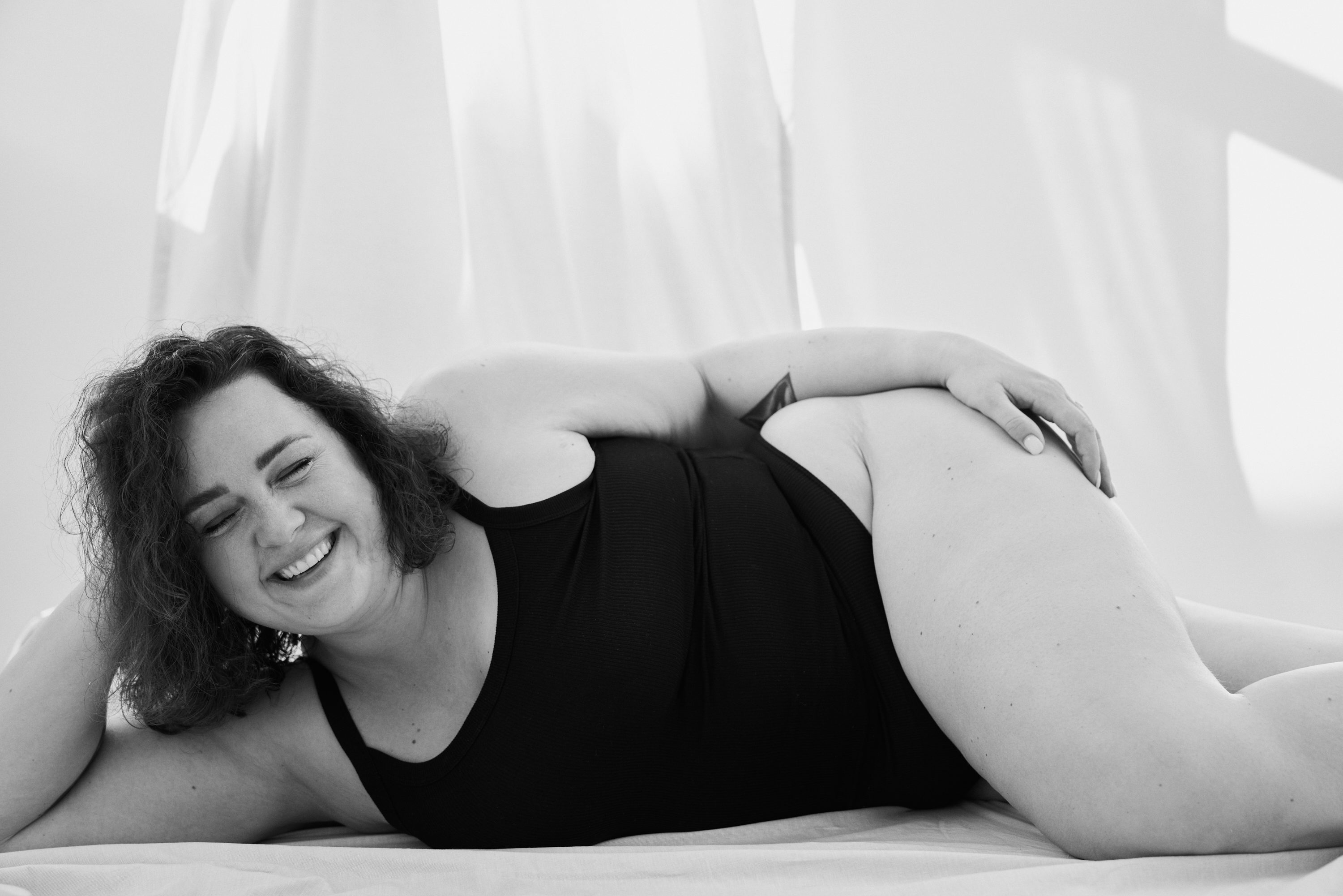 Ich versuche durch Worte zu versichern, dass mein Studio ein absoluter Safe Space ist. Ich baue das Vertrauen zu meinen Unlabeled Sessions Teilnehmerinnen schon beim Interview auf, teile auch viel von mir und meinen “Hardships”. Beim Shooting selbst generiere ich immer eine positive Stimmung. Fröhliche Musik, leckere Snacks, entspanntes Beisammensein.